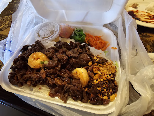 I love their rice noodle bowls which is served over rice vermicelli noodles with lettuce, bean sprouts, pickled carrots, cucumbers, cilantro, and crushed peanuts. I usually get the #53, which has charbroiled pork and a crispy spring roll. For a bonus of great flavors, I pour some plumb and Sriracha sauce on my food and it becomes a dish that's out of this world. I paid $6.99 and the portions are great.