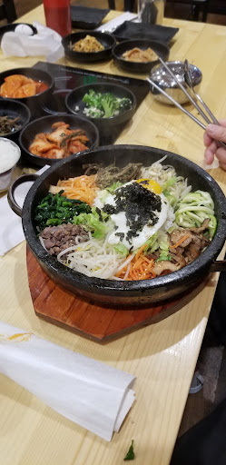 My server was very helpful and happy to answer my questions. I decided on the dolsot bibimbap, which comes in a very hot iron bowl. When she brought it out she explained that I should mix it with a spoon and that I should try it without the sauce first. She also pointed out the sauce was spicy.