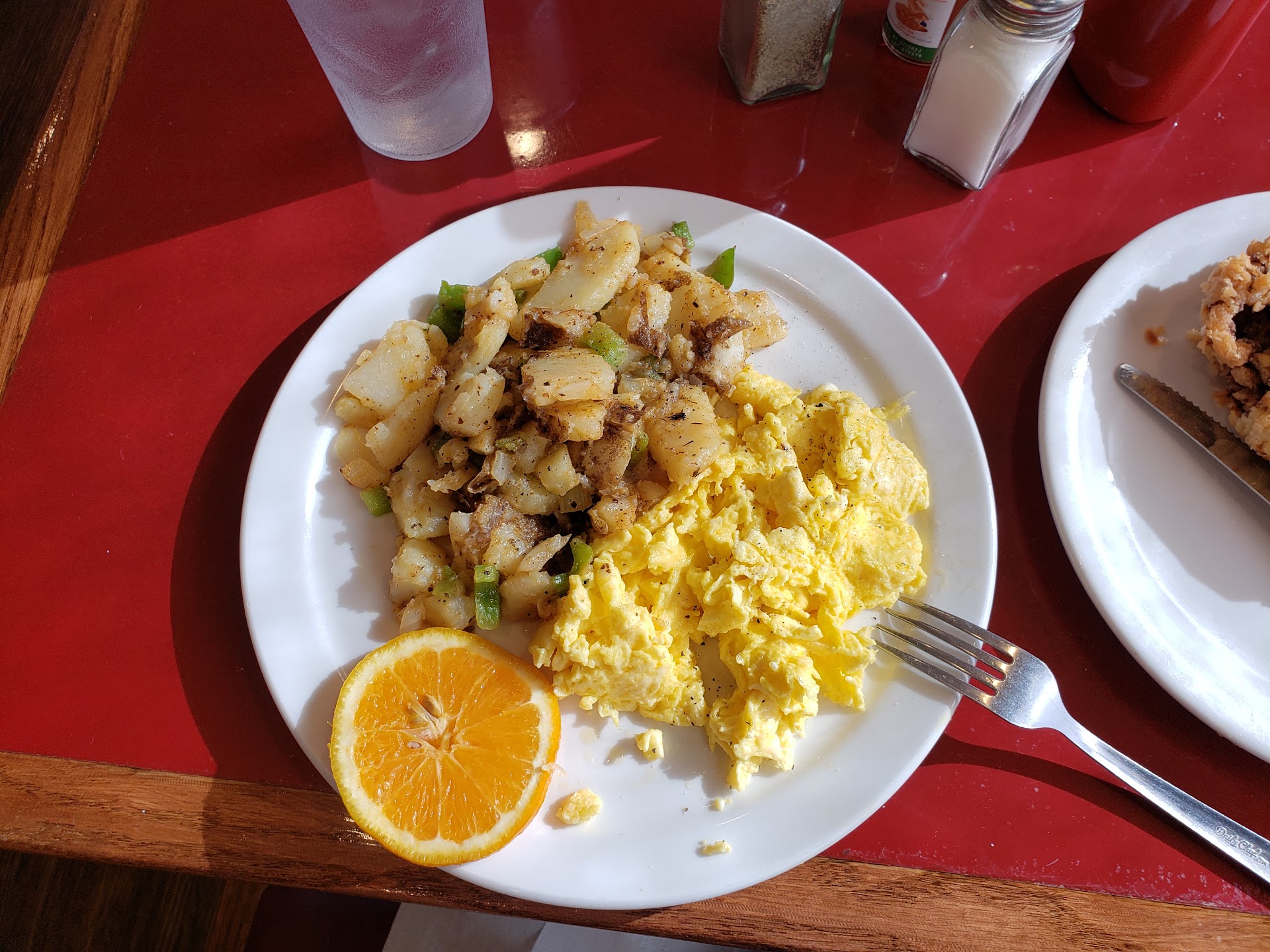 Ā Ā Ā Read moreshe was very attentive and was on my coffee every time it was near empty. When my friend mentioned he'd asked for a small but charged for a large orange juice, she was polite and understanding. 5/5 on service. That being said, the food was a far drop from even being mediocre. I had the chicken fried steak breakfast. It included biscuits n gravy, 3 eggs (mine were scrambled), hashbrowns and an orange slice. All of the food was cold, and even had it been warm it was just plain bland. The hashbrowns were undercooked, the orange slice was dry and powdery instead of juicy, the biscuits n gravy were fast food quality, as were the eggs. The steak was a hit and miss. Every few bites it would taste good, but was followed by another few greasy bites. For the price, it was not worth it. $8.95 could've bought me better tasting fast food. Overall, for being what it is, I will not be going back. As lovely as our waitress was, the food is bland and fast food quality. You might be better off just eating McDonald's...