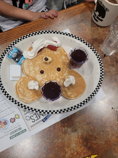 First, I want to say that our waitress was very pleasant and the clerk who sat us and helped us with our check was also very nice as well. However, my son and I came here with the free breakfast promotion to try the “newish” restaurant in town. We had never been to this establishment, the ambiance is nice with the bear themes . However beyond the bears the health inspection rating on the door through us with the “B” rating but gave us something to talk about and a chance to read why on the internet. We were seated quickly to a table that had not been wiped down. The hostess apologized and went and grabbed a rag from the man cleaning tables and wiped it down and then dried it with a place mat saying “the napkins just fall apart”. We smiled and I pulled out my chair to food all over the floor from a previous family . A quick look at the floor and this was the case throughout. A waitress quickly took our order and again very pleasant, as I glanced around to restaurant with most tables occupied an about half of them with food. There was only two waitresses for a fairly large crowd and one person busing tables and a hostess seating and helping fill in where she could. Then, the food came. We both ordered the typical breakfast with two eggs. He received bacon and I did ham. He did French toast and I had two pancakes and a coffee. The pancakes must have been sitting for quite some time and the ham was so salty one could barely eat it. My sons French toast was slices of bread that barely would qualify as French toast. So, as my son and I drove home we could not help but wonder why a business would provide a free meal to try a restaurant and then fail at the one thing they needed to do which was make good food. In addition, during a time of cleanliness being so important one can only wonder would you not want to appear very clean. The goal should have been to provide the best service and food for new customers so they are wanting to come back. Instead we were left wondering why anyone would pay $15.99 for food that would cost less then a few dollars to make at home and taste a thousand times better, and that was the cheapest thing on the menu, besides adding a side to something that cost nearly as much as a complete meal at another restaurant. We never saw a manager, but why would anyone pay outrageous prices for bad food. Seriously, I am so glad I didn’t bring my family of five here to the cost of $100 plus dollars. Rancho has way better choices. Go...