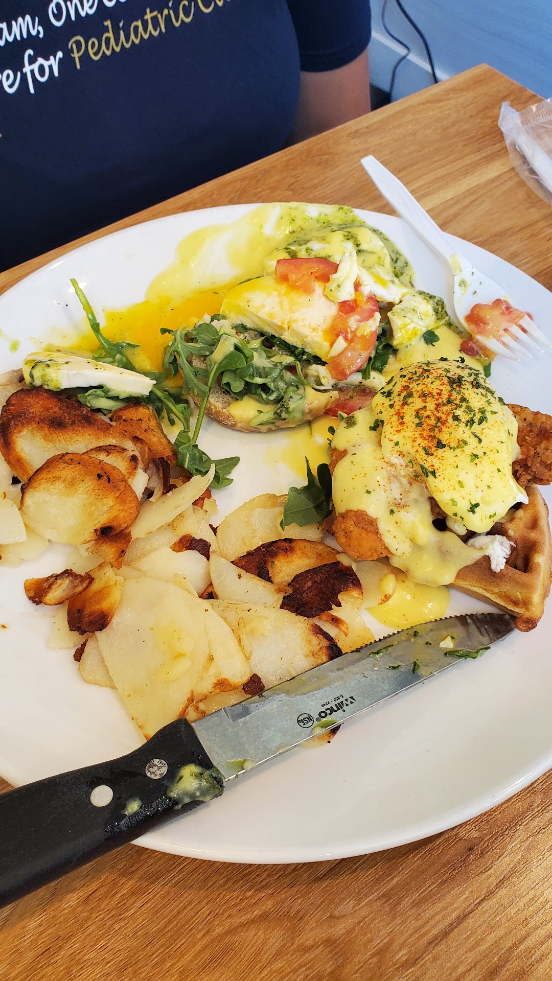 Read moreThis was my first time here and it was so disappointing! We were asked to give a name and phone number to be on the waiting list and they said it would be an hour wait for a party of 2. After an hour and half, we went back in to ask for an update. The host told us that we were the next party to be seated. So we waited more since we had already invested an hr and a half. Another 30 minutes passed so we went back to ask the hostess . The host said: "oh, for some reason you are not on the list!” Even though we received text confirmation that we were on the waiting list. We didn't mind the waiting, but the fact that we were forgotten was really disappointing. Then we were seated, we realize the seats were wet! We had to ask 2 people to come and wipe it off for us to be able to sit. We ordered some Mimosa flights and egg Benedict. The food came first, and of course, the food was almost cold! We had to remind them of the drinks we ordered (which usually you get your drinks first). There were lots of juice drops on the mimosa tray (just like they were trying to be fast, but sloppy). We were given plastic forks and we had to ask for silverware ( which was really strange). The condiments on the table had so many finger prints on it ( I think cleaning those is a necessary act during a pandemic). Our waiter, Gilbert was really nice and tried to make our experience better. As I mentioned earlier, this could've been a great experience, but it wasn't. And that was my first, and last time that I...