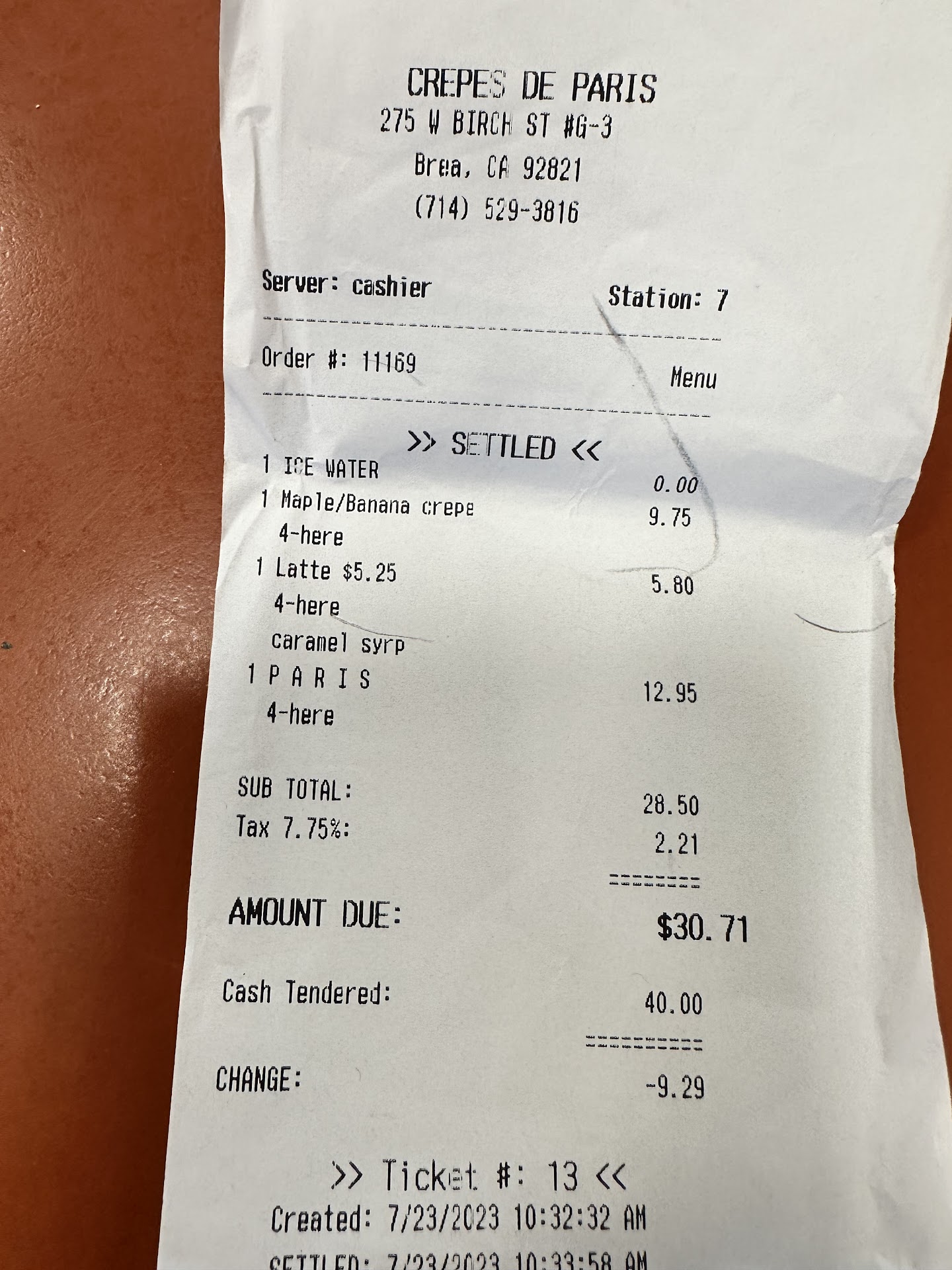 Read moreOur first and last time for Crepes at this location. Unsanitary service, cooking practices.