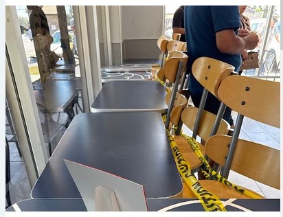 This was the worst experience ever at a Dairy Queen!!!!! I was there around 5:30-6pm 10/10/25... the bathroom was "not working" my blizzard was runny could not sit inside and the table outside almost fell over!!! Caleb the employee was rude and could see i am disabled!!!!! I have cerebral palsy and it is very obvious when I walked in to order, and even though there were several signs saying we are happy to assist...no help was offered what so ever!!! The tables inside were stacked against the wall with caution tape? The table outside almost fell over when i put my food on it!!! they made the Choco strawberry blizzard before the chili dog and stuck it in a little fridge behind the counter, so when I went to eat it was runny and they never turned it upside down either because it was runny I suppose?!!!! I usually go to the dairy queen on mission in Montclair, but I wanted to try another location, so we even drove further from our home in Ontario...big mistake!!!! This picture was in another review , but this was exactly how it looked when we walked in, they just don't want to clean up or do any extra work, same with the bathroom Iām sure!!!! That is a definite ADA violation to not allow disabled person(or any) customers to use the bathroom!!! I was going to go back in and really let them have a piece of my mind, but I was so disgusted we just left and will never return!!!!!! the worst experience/service on every...