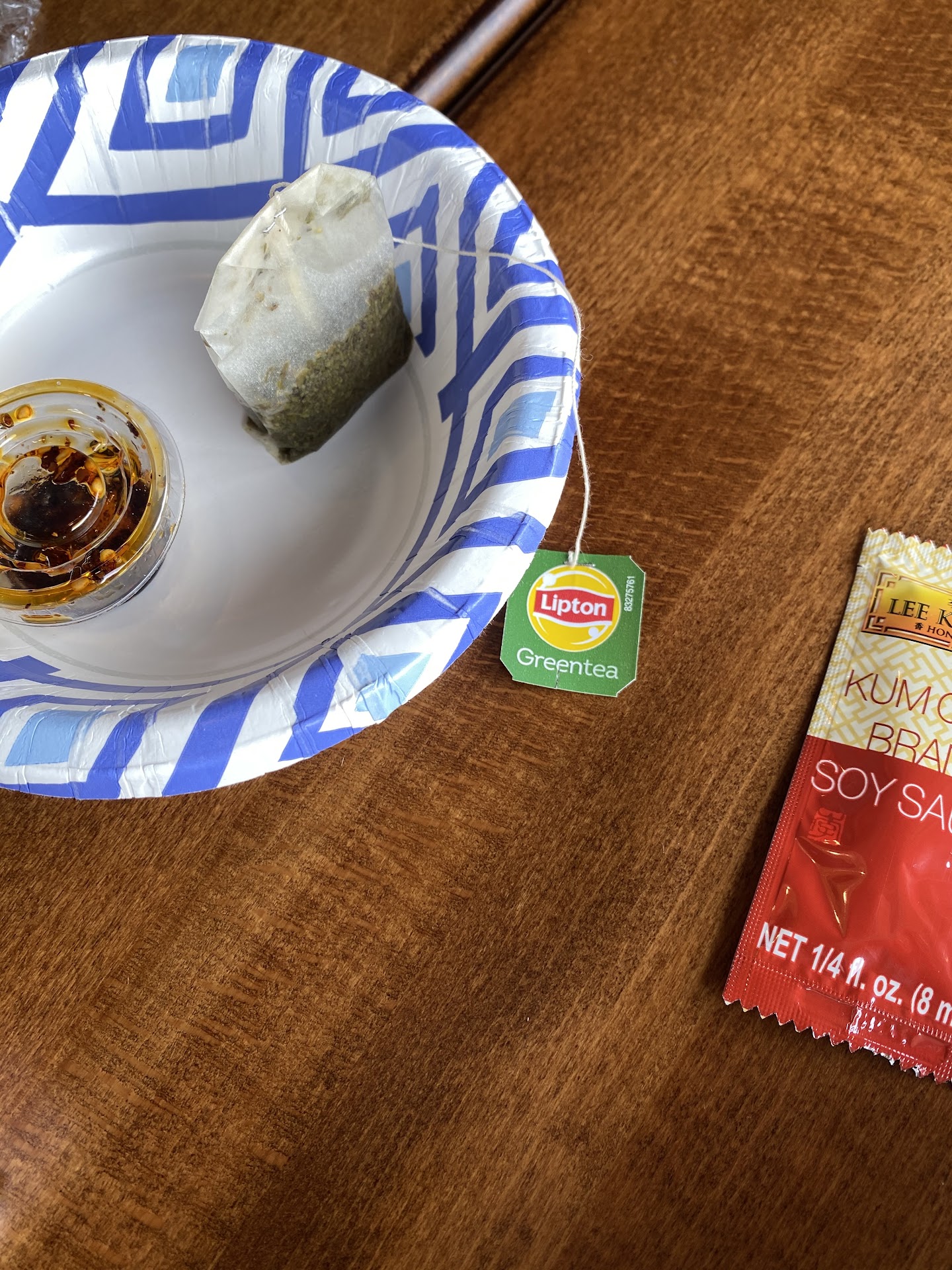 I was taken aback when the server came back with hot water in a paper cup. Turns out everything was served in disposable containers. What surprised me even more was that the green tea is Lipton, nothing at all what I expected which was something that perhaps had more Asian authenticity.