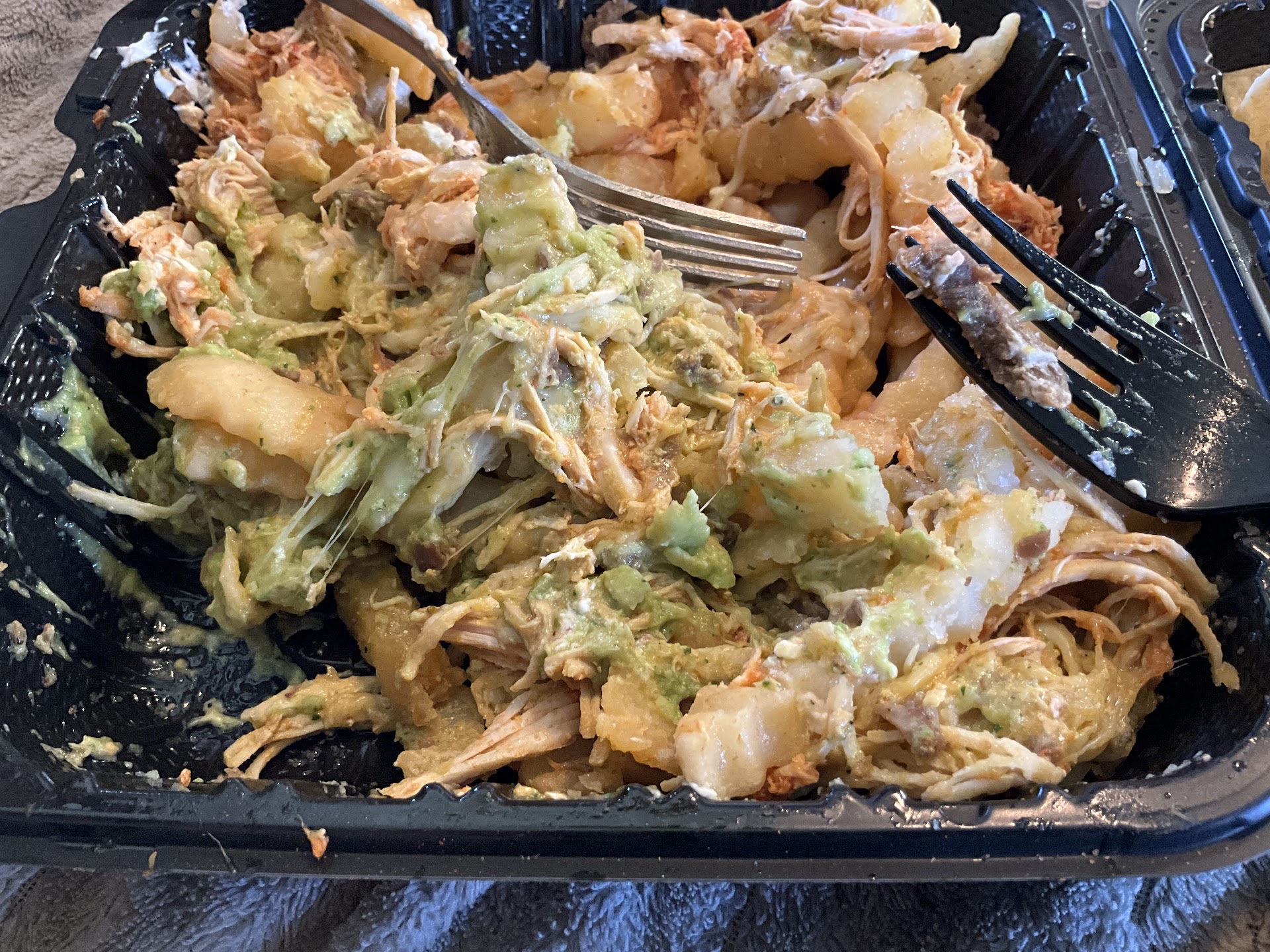 When I picked up the phone order, the food was ready and sitting on a shelf behind the counter with the bag tied shut. The cashier was helping 2 other customers before me. When it was my turn, she grabbed the bag and began to untie it. I thought she was going to show me the plates to confirm the order, but no. She opened the bag, grabbed the chip bag from within, and went to the kitchen window and bare hand grabbed an extra serving of chips, put them in the paper bag and put them back in the plastic bag to re-join our food. Then she came back to the register and was touching all the buttons and then took my card and inserted it in their machine to charge me, still bare handed just as she did the two customers before me.