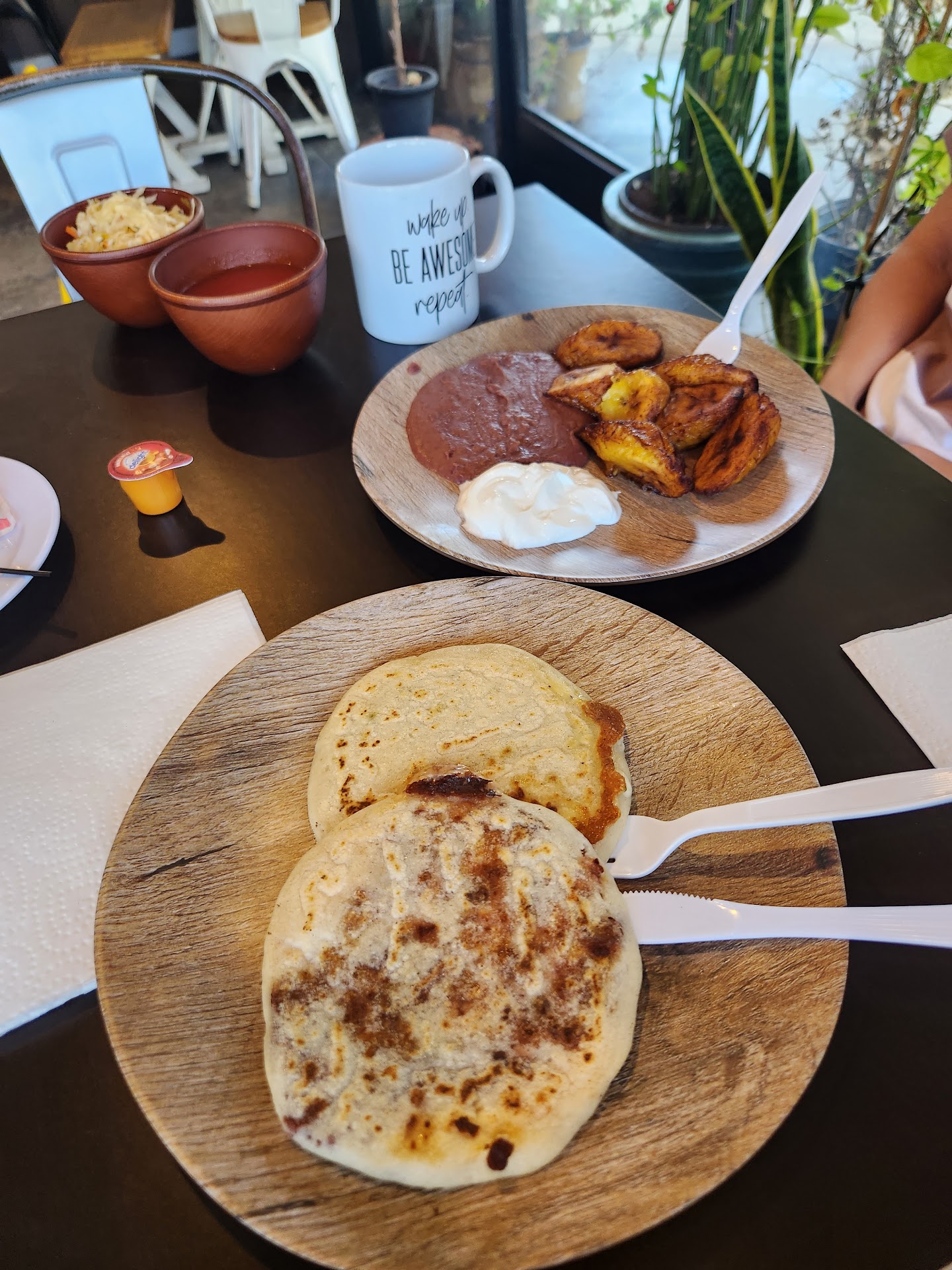 After I placed my order, I was informed it would be about a 15 minute wait as it is made to order. I tried a little of everything when I got home. The pupusas come with homemade curtido (slaw made with cabbage) and salsa roja (red sauce) to top on your pupusas. Everything tasted wonderful and the owners were very welcoming. Great addition...