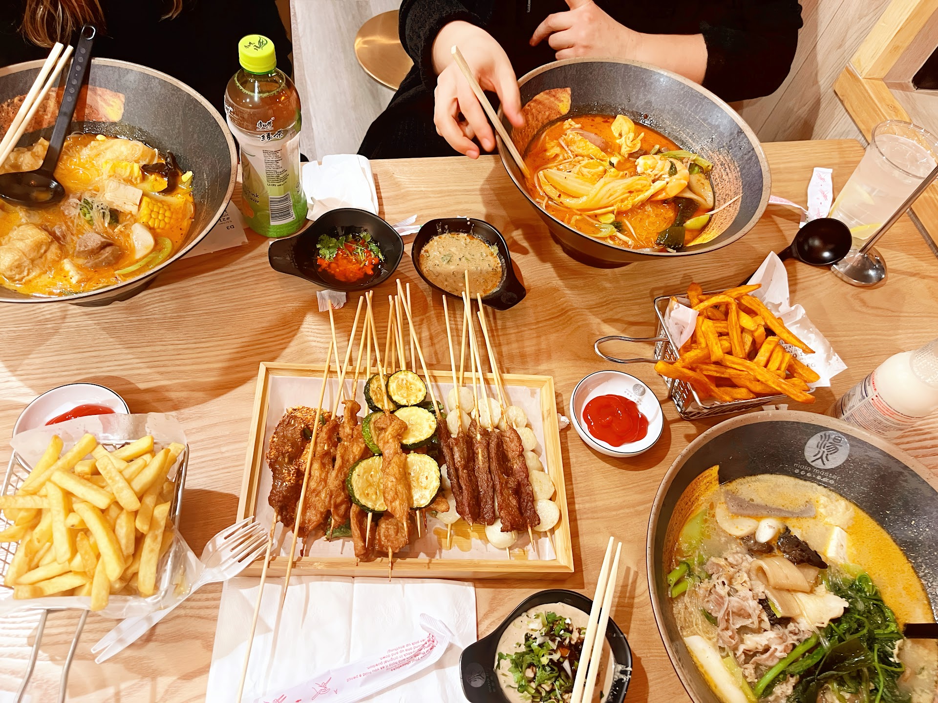 Read moreMy husband and I ate here for lunch today. They are located right next to Mr. Dumpling. We arrived as soon as they opened at 11:00am. There are plenty of indoor seating. Since it was our first time, we asked if they could explain to us how it worked. They told us to grab a bowl and start filling it up with whatever we wanted; fresh vegetables, seafood, meat etc. Then we take the bowl to the cashier to be weighed. My husband got the tomato soup and I got the beef bone soup. My husband picked the udon noodle and l picked the thinner ramen style noodles. You pay by weight and our soups came out to about $17. They cook your creation in the kitchen in the back. We saw they had skewers in the fridge too so we picked a variety to try and an order of sweet potato fries.