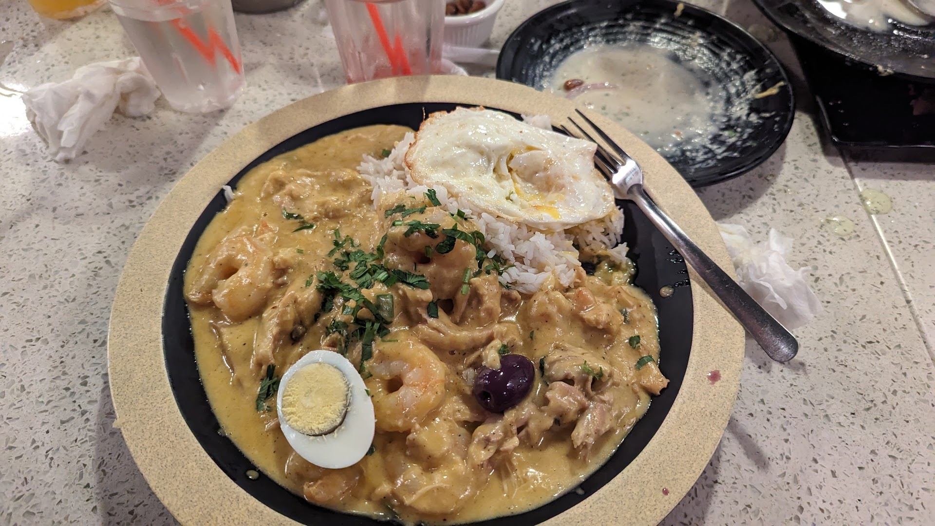 Both were good, but we especially lovedddd the tacu tacu! I'm sure it wasn't healthy, but that rice & bean mix was soooo flavorful and such a nice soft texture that we'd never had before! I didn't know rice and beans could be that good!! The bisteck a lo pobre I wouldn't order again.... everything was good, but it was such a random combination of foods (french fries?!).