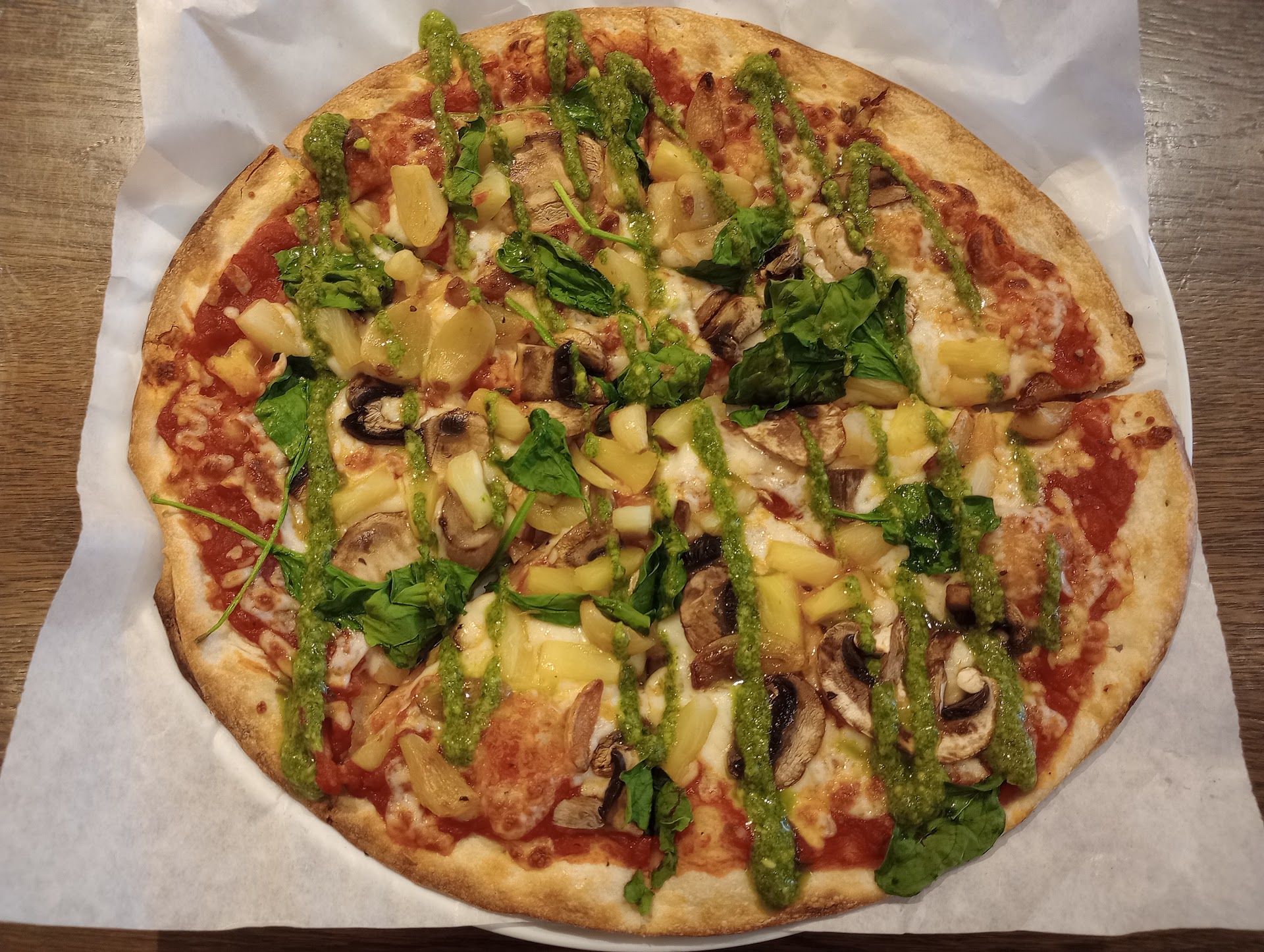 The service was friendly, energetic, and fast! The people building my pizza were helpful and ensured I got what I wanted. I did not wait long and got my pizza quickly after sitting down. I ordered a pepperoni and sausage pizza with extra mozzarella and ricotta cheese. I forgot to add a drizzle to my pizza before putting it in the oven so I learned you can still get drizzle at the end for free! I got some pesto and balsamic fig glaze, they were both so good on my pizza. For dessert, I of course, got their No Name Cake and it is always a smash hit.