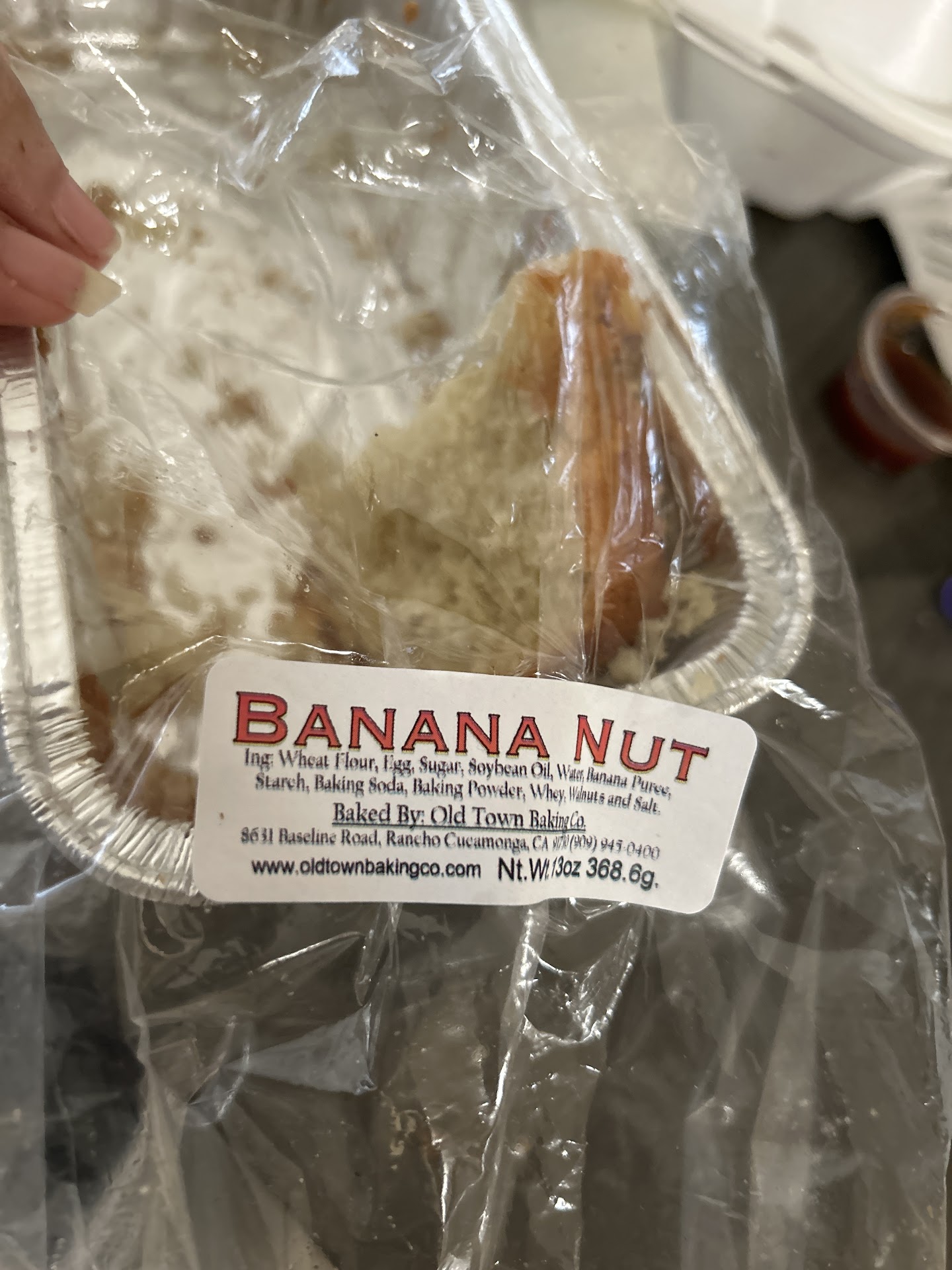 Read moreGot some " banana nut" bread from Kaiser in Orange County yesterday. The reason for the 3 stars is because on the bread was 7 dollars and the man said 3 for 20. lol! 7x3 is 21 sir that's not a deal at all, but I digress. Second issue I had is that this was not banana nut AT ALL!!! It tasted like regular pound cake with a few walnuts on top. There wasn't even any nuts in the actual cake. Banana nut normally has a brown tint to it due to the banana but nope this was yellow/white like a pound cake. I had my husband and mom taste it to make sure it wasn't just me and they both as well said this was definitely not banana nut. Not sure if the batter was mixed up or they don't really put any banana in here, but I didn't get what I wanted.
