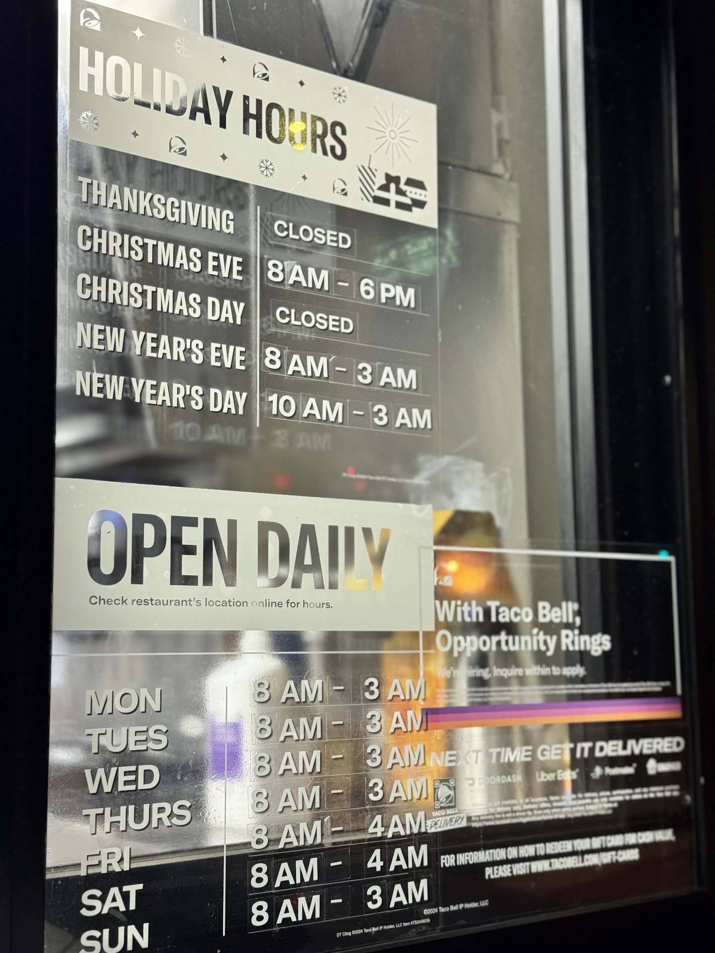 Had my worst ever experienced at a Taco Bell here. After waiting in the Drive-Thru for over 45 minutes for a mobile order that was placed in advance I received my food with it correctly marked, yet when I got home it was not the food I ordered. They had simply wrote what I ordered on the wrappers for the wrong food. I returned to get my order remade and was "helped" by young man named David. He did not apologize at all nor offer any discount on our order or anything. He then proceeded to again get my order wrong, once more messing up two of the tacos and dropping off a chalupa from the order. I had to explain what I ordered multiple times over and over again. He made it clear that he either didn't care about my order or was under the influence while on the job. It's honestly insane that it took me over two hours to get dinner from Taco Bell, I won't be visiting this one again anytime soon. I'd rather drive to one that's further away as I've always got so much better service every time I've gone to the other one. I'd recommend you do the same