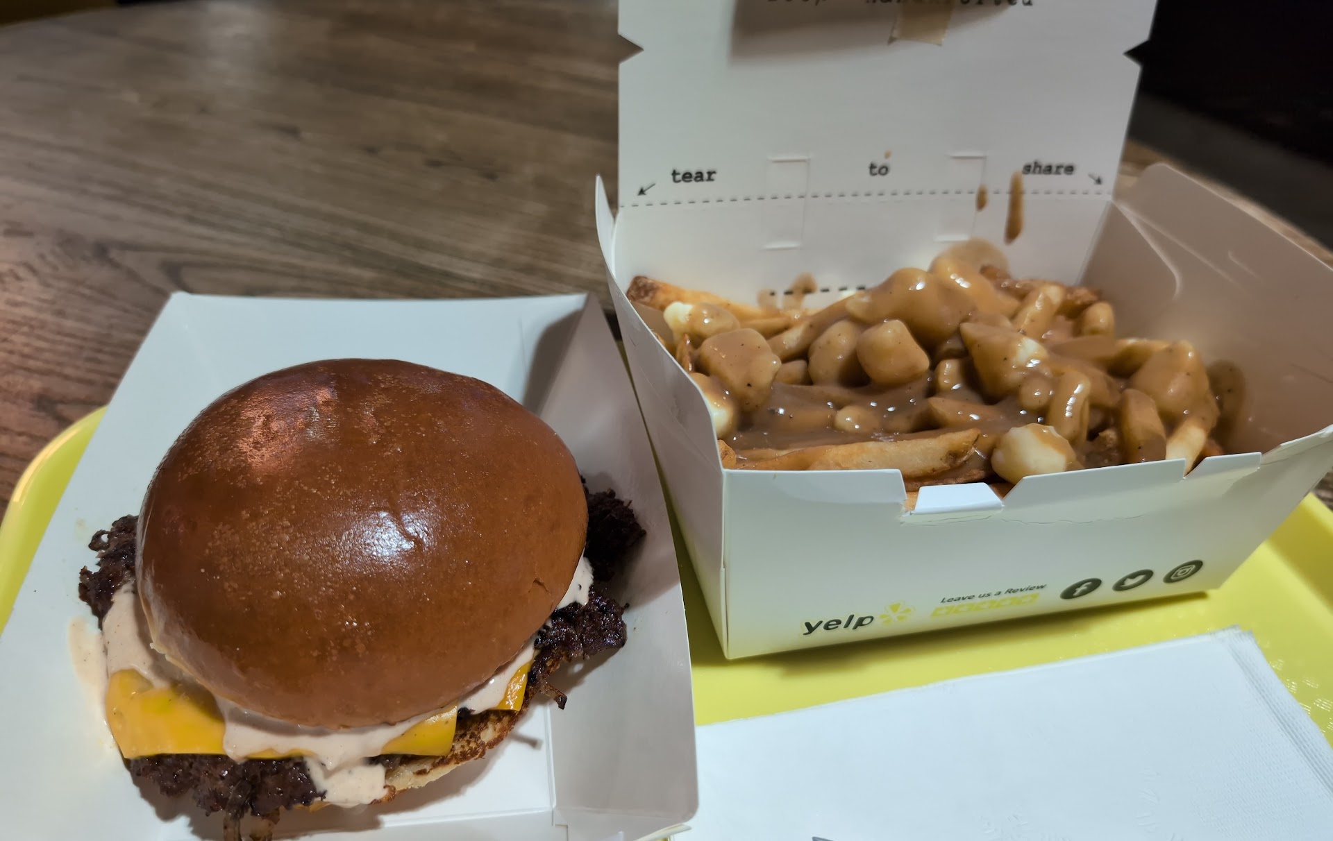 Read moreI ordered a wagyu smash burger which was really good, I appreciate how much burger sauce was on it and it seemed to be seasoned well. I also ordered an order of the poutine since I've always wanted to try it with friends in Canada telling me how good it is up there. I unfortunately wasn't a fan of the flavor of the gravy on the poutine at all. It was too salty and had somewhat of a slight burnt/bitter taste to it which was a disappointment. The fries themselves were good but the gravy just unfortunately was not good at all. I only had a little bit and ended up just tossing them. Overall, it was good, but I might suggest skipping...