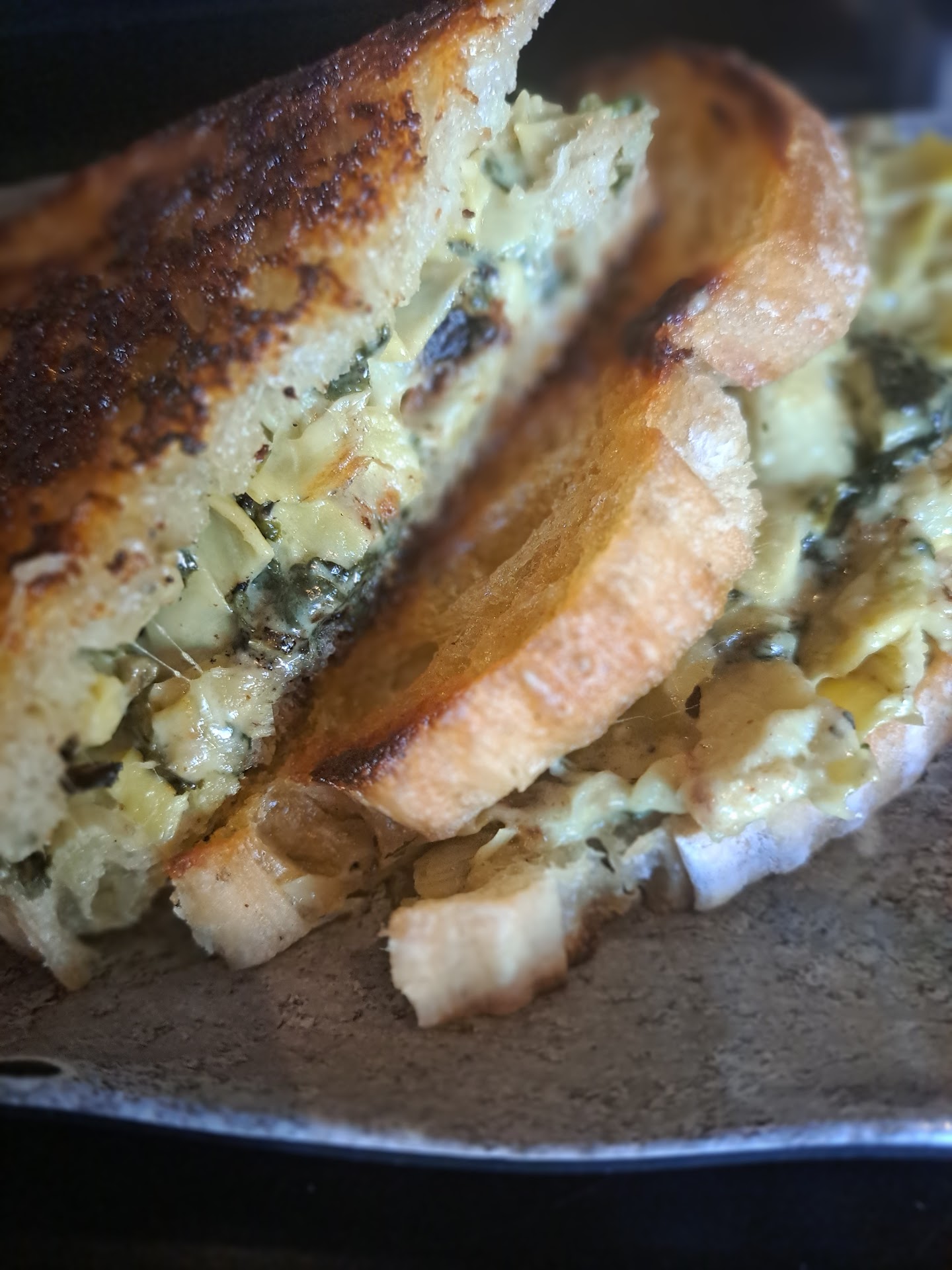 ย ย ย Read moreLet's start with the parking , it's not convenient, it's meter parking or you will have to park in the further parking lots in Victoria garden and walk up, second I walked in the host wasn't very friendly in my opinion it was a lady with half blk and blonde hair . We had to wait about 15 minutes for a table, the decor is different but it very nice trendy and instagram worthy, people dress casual here so i seemed kinda over dressed. Our waiter was nice , however we had a couple dirty cups, when we asked for wine . We told him he brang back another cup that was semi clean . The food I would say is worth it and it's very high end looking and affordable. I got the grill cheese & artichoke sandwich and onion ring . Really good ! We also ordered burchetta very good , and the bread pudding was phenomenal ๐ . I personally wouldn't go back to dine in , I didn't like the vibe of this restaurant, it's dark , dark walls , they played blues and sometimes didn't play music at all but I guess that's the point of a modern whiskey bar and restaurant . The energy wasn't there for me , the workers through out the place are a hit and miss . It's just not a fun exciting place for me personally so I would possibly order take out to enjoy my food else where . They do have a bar. One thing I didn't like is the fact they don't have menus you have to use your phone and my phone didn't have a connection in there. There was outside patio seating but it was triple degree weather . . . Part 2 I actually went back in dined in the food was still really good, service was a lot better, and workers were attentive , we sat on the patio a bit before we went inside I felt like the vibe was better . Great food as always we tried the fried oysters they were really good 10/10 bread pudding always...