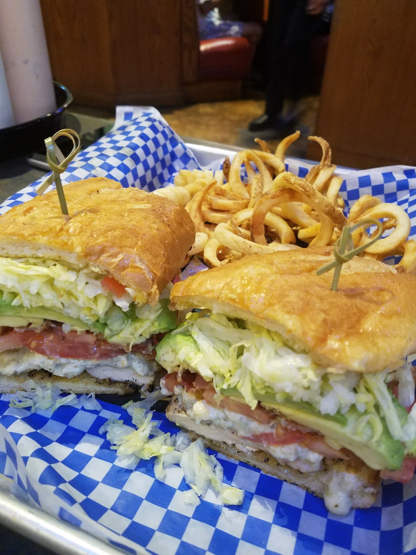 Mr. Particular ordered the Cobb Sandwich without the dressing and it came loaded up with dressing. They must have mixed the two up! When he told the server that they put the sauce on it, the server said, "Really, they did?" Looked a little sheepish and then walked away. Mr. P also ordered curly fries and said he could not stop eating them they were so good and not greasy.