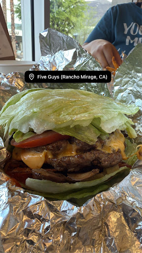 Read moreUgh. Decided to have a change from our regular In-N-Out burger which is consistently satisfying but a 15 minute drive. Ordered a bacon burger for me and grilled cheese for my wife and a large fries to share. Ordered online, when I arrived there was one other couple waiting for their meal but had to wait 5 minutes for the food to arrive. When I got the food home (5 minute drive) , the grilled cheese was cold, unappealing and missing some toppings we ordered, the burger was lukewarm, soggy and just looked plain disappointing, it tasted OK though. Fries were just OK. During the pandemic you would think these restaurants would go the extra mile to make their food more appealing, in Five Guys case this is not the case. Its a shame because it is located much closer...