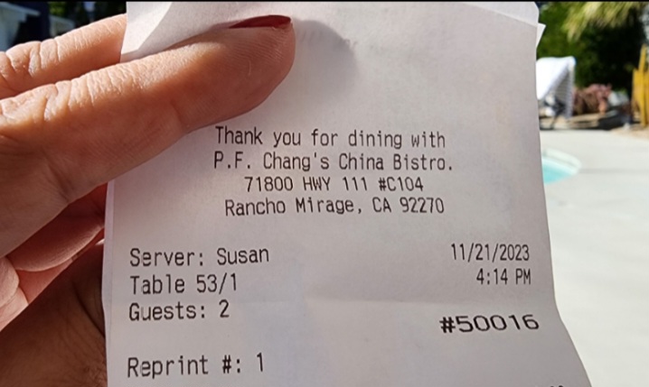 I had not been to this PF Changs since before Covid when I used to visit often with friends. It's always been a good place to get very good food in a nice, welcoming environment. This visit was as good as ever. I reserved a table for 6:30 pm online and received text messages keeping me updated on my upcoming reservation - - which was very helpful. Even though it was probably an automated response, it made me feel welcome and that they cared about their customers. . I brought a friend, originally from Hong Kong, to celebrate being able to go out to eat again. We arrived a little bit early but the hostess seated us very promptly. The waiter, Forrester (like the Subaru!) , came by very shortly to get us started with drinks. He was very nice, welcoming, and watchful and checked in with us often. (He was an excellent waiter!) We ordered the BBQ Spare Ribs and Pot Stickers for appetizers. Both were excellent and something I would definitely order again. For the main courses, we ordered Beef with Broccoli and Sweet & Sour Chicken. Both were cooked to perfection. The beef was tender and, unlike other places, really tasted like grilled beef. I'd order either of these dishes again because they were so good. After the appetizers and main courses, we were too full for dessert, but they had a very good selection to choose from. We ended up packing up a lot of food to go, because their portions were generous. We had a great time there and look forward to coming back soon! BTW, there is a huge mural above the kitchen area of a Chinese woman holding a Japanese saber with an inscription in Chinese. My friend translated it to: "Refuse to be mediocre" , in other words to be great unlike the competition. That sounds exactly what PF...