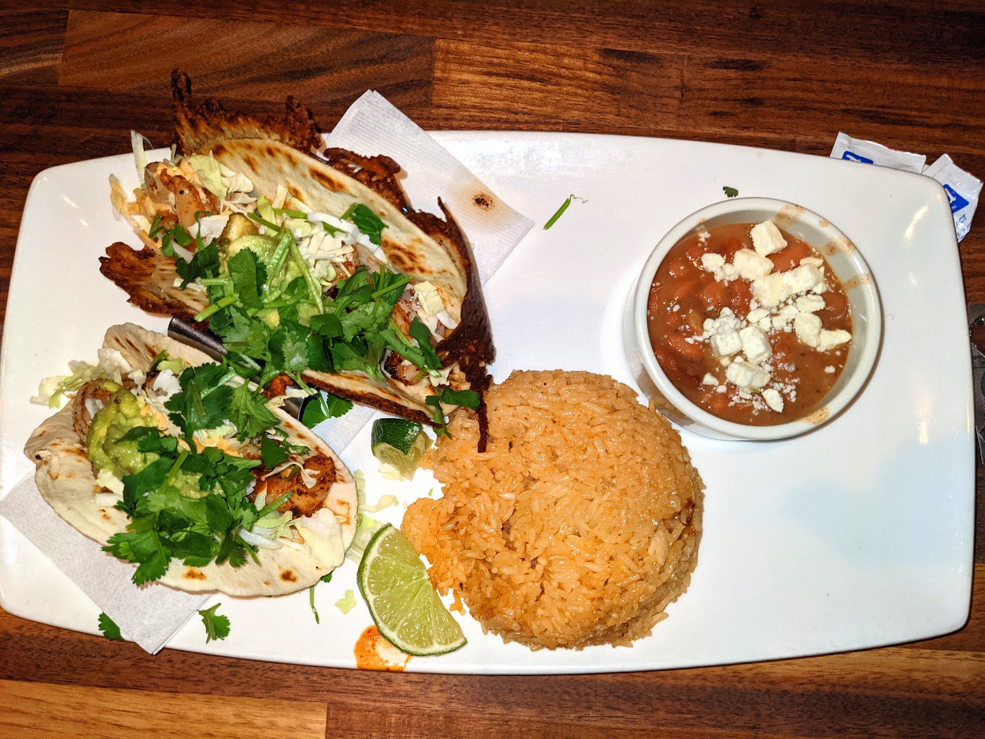 I ordered the Blackened Shrimp tacos with cabbage slaw, chipotle sauce. I really enjoyed the sauces within the taco. The vampire style taco was +$2-3 extra to have your taco shell cooked in a layer of cheese with a corn tortilla. Unfortunately the vampire style taco was too hard to bite into and it turned into a fight with your food moment. The taco shell was so hard that it definitely affected my eating experience. I enjoyed the Beans served with the two Shrimp tacos they were well spiced out of the dish and brought flavor to the bland rice. The "Spicy Rice" served with this dish is a tomato based rice however it has no flavor, nor heat as claimed. The rice was also wet and mushy.