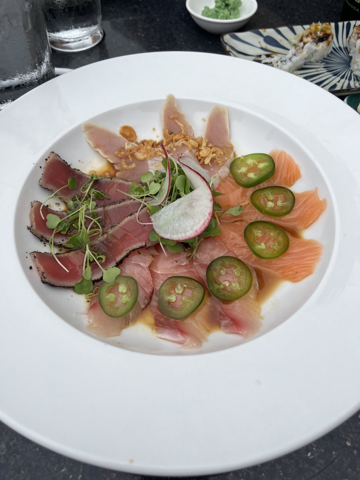 The green tea ice cream looked amazing but didn't really taste like green tea or like the normal green tea ice cream you find at all other sushi restaurants. Pass on the green tea ice cream.