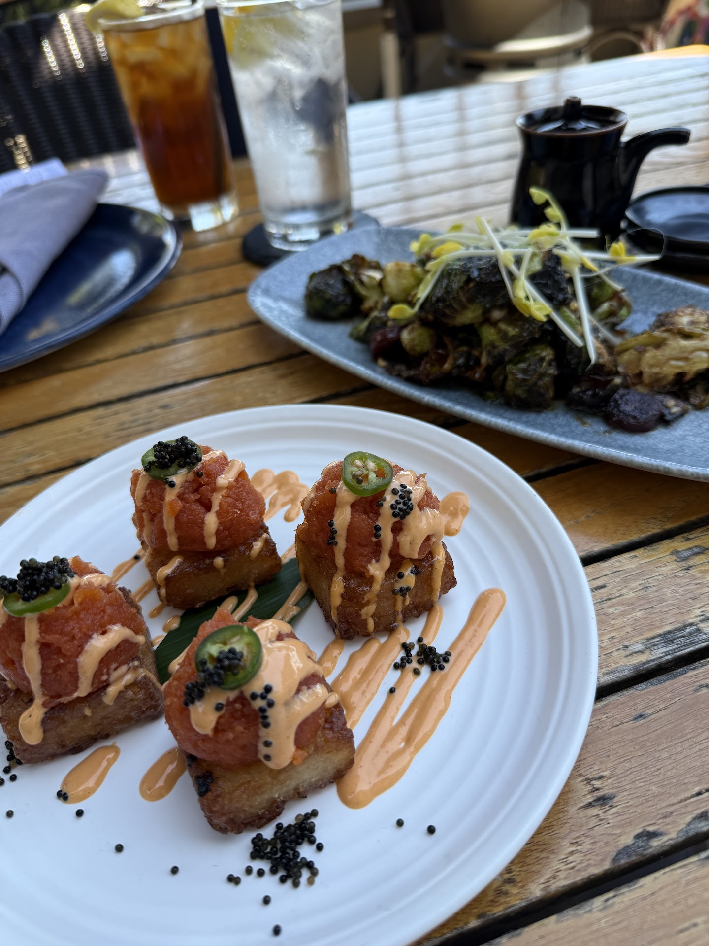 We enjoyed the dumplings, Uni Nigiri, and two rolls—the Surf Rider and Triple Delight—along with some outstanding cocktails. The sushi was of great quality with a complex flavor.