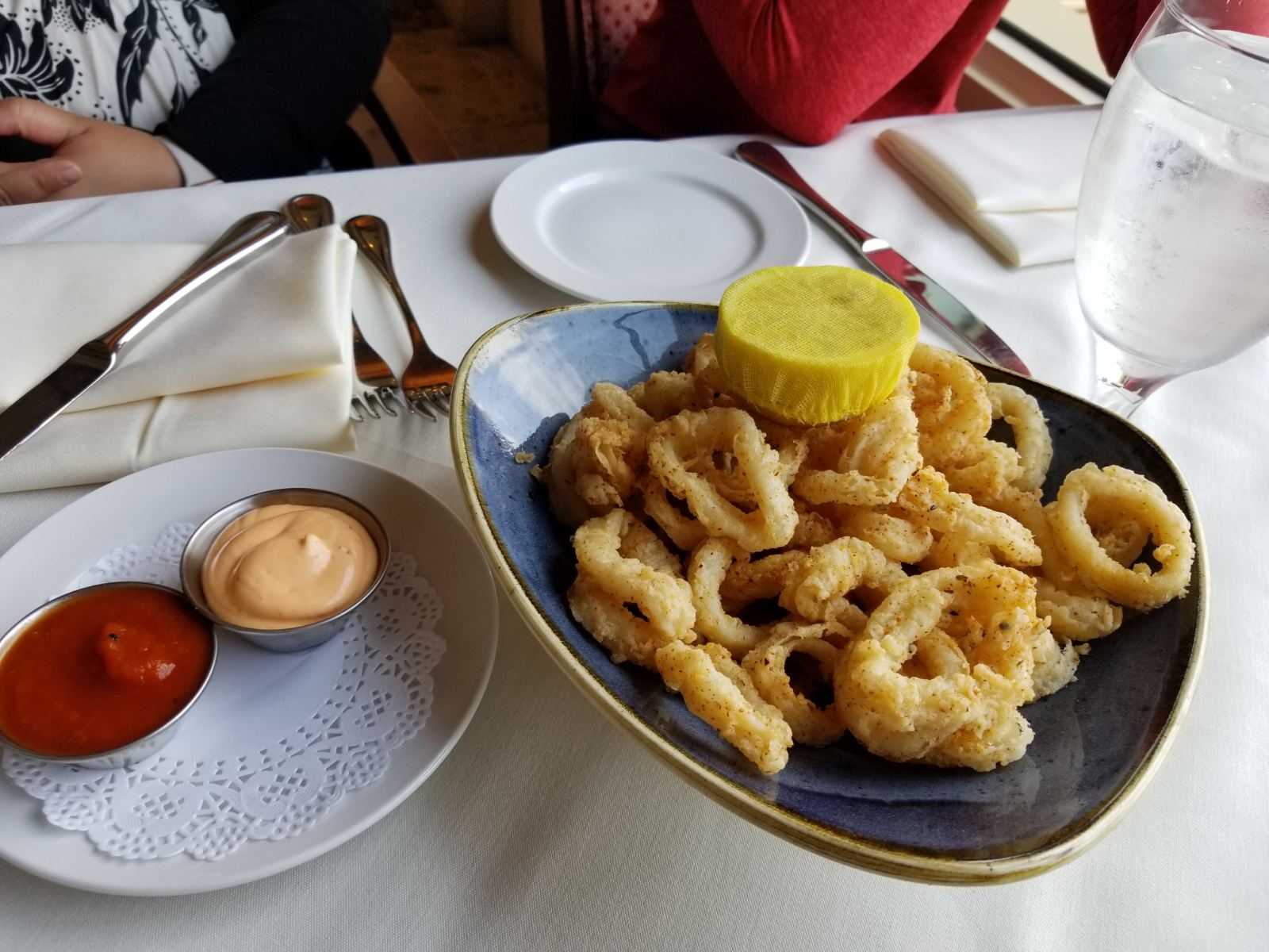We were seated by the window overlooking the golf course and the ocean which was great. I ordered the reuben sandwich and calamari. Calamari was cooked perfectly and seasoned well. The sandwich was good too. Nothing extraordinary but it is what a reuben sandwich should be like. Our waiter was not very attentive. It took more than 10 minutes after we were seated before somebody even acknowledged our presence. They were just walking past us like we were invisible. If they would've said "somebody will be with you shortly" that would have been nice. And at that time there were only 2 tables occupied. They waited for us to order before they even filled our glasses with water. It felt like you couldn't have water unless you...