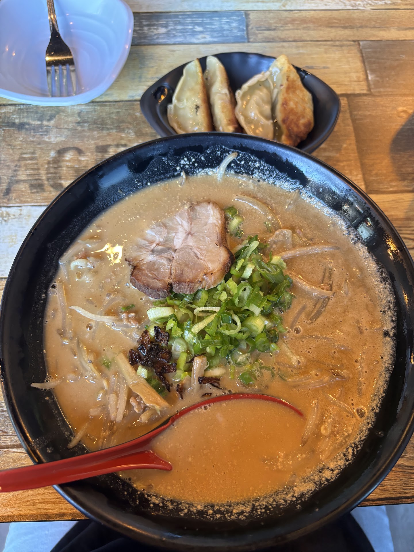 Read moreAnother location besides the other closest location to this in Down Town San Pedro. Good ramen and side dishes. Nice services. Glad another location is around this area of RPV. Surrounded by other retail and eats. Vegetarian ramen , corn salad, and vege gyoza...