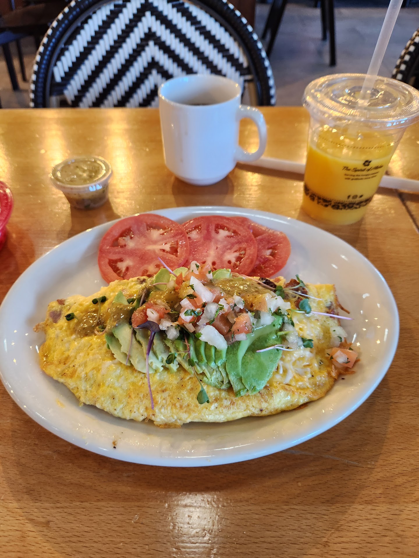 Previous visit Great little breakfast spot. I stopped in today, and Griselda helped me out at the counter. You place your order and the staff brings it to the table. I ordered the meat lovers omelet with sliced tomatoes, a coffee, and an orange juice. The ambiance was peaceful and positive. The food came out hot and tasty, and I enjoyed the meal. It was perfect. Their prices are reasonable and the potions are hearty. I highly recommend this...