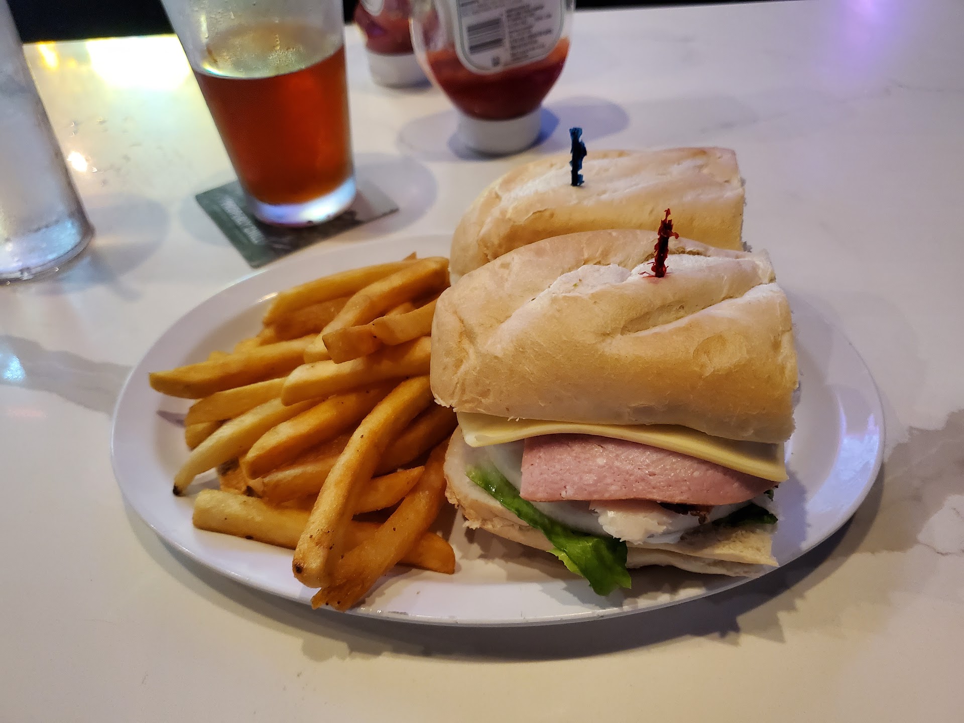 From the moment you step inside, the extensive sports memorabilia adorning the walls transports you into a sports lover's paradise. It's an ideal spot to catch your favorite games, with a vibe that only amplifies the excitement of match day.