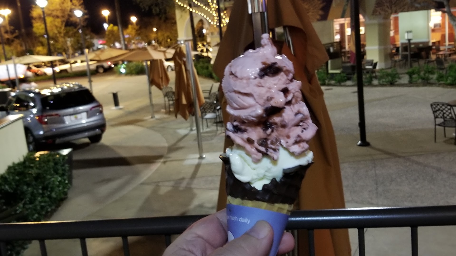 OMG, if you want ice cream a you are within 10 miles of this place you cannot go wrong. Recently opened, in the same shopping center as Target and Trader Joe's I found Handel's just curious why there was a 25 person line at 9pm on a SAT night. So here's price, product and service and store... The price is extremely fair probably double the quantity you get at the local 31 flavors and really thats the only competition. I had a waffle cone chocolate dipped as a double. Double somehow gets double scoops, so about 4 scoops of ice cream, Wow! The product was amazing. For the double I had vanilla and black cherry. I've found some ice cream to be too sweet, this had distinct flavors and there was a huge list of them to choose from. The cone was set with a generous thick 1.5" rim of semi sweet chocolate, perfect. It was very similar to Ben and Jerry's with a thick air free consistency. Not too icy, almost sticky, soft but set well enough that it wasn't instantly melty. Although we were all enjoying @ night. Service was excellent, RSM people are quite a nice bunch to begin with. The staff was patient and explained the product and ways to order to me. I could see the one of the staff being attentive to doing wipe downs and sweeping for the others. Last the store was unique in that the dip stations were lined up in the center of the store. The frontage was a bit skinny with only a few tables n chairs. So you order and then your server travels into this massive bank of eight (?) dip station freezers to get your flavors, impressive. Having sold ice cream I was surprised to see there was only one sink. Also no handy way to quickly rinse the scoopers being used. This slowed the process down a touch but things were being done cleanly. Not really a complaint, ice cream like this is worth the wait. Last please look at the menu possibly already posted a couple times. They do banana splits, sundaes, there's many toppings, customize however you like to enjoy. No, I don't work for them. I really enjoyed my ice cream and was struck by the value and service. Check out my pic of the chocolate dipped waffle cone double with black cherry on top and vanilla on bottom, epic... Bring a friend, chat in line and enjoy this already very popular ice cream. Thx Handel's and...
