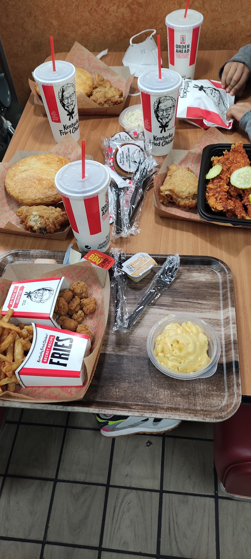 Read moreI was very disappointed last night. Went to go get a bucket and I asked for "all white meat". At the very bottom, hidden under the thighs and breasts were 4 wings. I paid for all white meat, and I got a mixture. Quality control seems to be lacking in the food industry. My family experiences this often. Well order food, go pick it up, then discover after getting home that something is missing or changed. Just double check as your getting it...