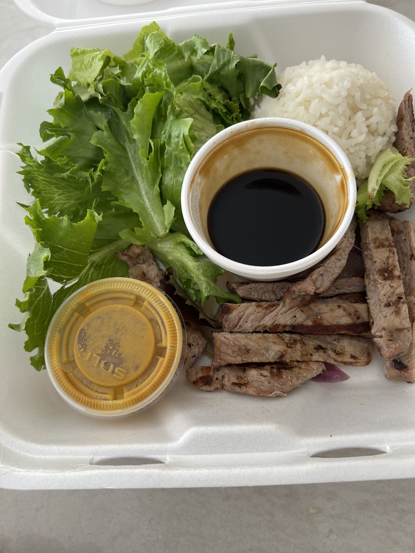 I arrived here for lunch on a Thursday around 1pm. I asked for a to go menu and but didn’t have any and told me to go on their site. The site was down and all I found were menu photos from customers back in April 2022. I decided to go with the 3 item lunch special with beef teriyaki, crunch roll, and sashimi combo. It also comes with rice, salad, and miso soup for $18.00. When I got rung up, it was $21 with tax, which I realized was a price increase from the April menu (okay, we’ve had record inflation the last 6 months, so it’s all good). The food: Beef teriyaki: I grew up in Seattle which has a pretty high bar for juicy and tasty teriyaki. I have yet to find anything in Cali that’s close. The sauce had a lot of potential but the beef itself was dry and tasteless. Salad and miso soup: they were both pretty good. Sashimi: This came with 3pc salmon and 3pc tuna. Both were pretty dry. Very disappointing since they charge an extra $2.50 for sashimi “upgrade”. I’ve had better sashimi in belt restaurants and definitely better in sit down restaurants. Crunch roll: the roll itself (rice, crab meat) were fine. The crunch was stale and not crunchy. Also disappointing. Should have stuck with Cali as the crunch ruined the taste for me.