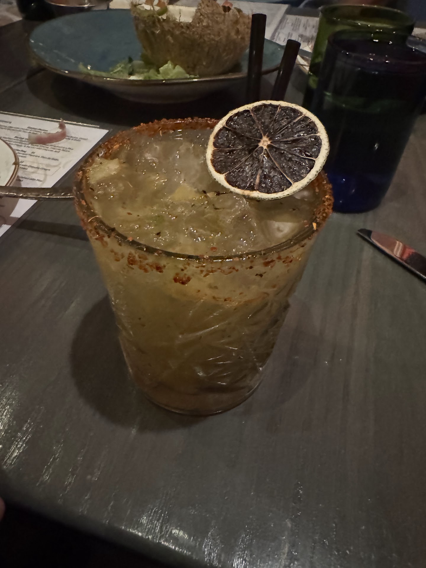 Read moreThis is a nice upscale Mexican restaurant. They have a really good selection or margaritas. I got their Todos Santos spicy margarita with roasted pineapple, which had chunks of pineapple and jalapeños in it. I also got their Mezcalito that had a jalapeño agave mix. Both were very good and had a little kick to them which I liked. Now I know we were a large group but our appetizers came out before our drinks. For an appetizer we got ceviche. It looked amazing but it was served in a hollowed coconut. It didn’t say that on the menu and unfortunately my friend is allergic to coconut so we had to order another one without it. It had really good flavor and it was a bit spicy which again I love the spice. For my entree I got the pastor tacos. Usually when I order tacos they come made already but not theses they were served more like a fajita style it came in a skillet with the pastor and pineapples and the tortillas, salsa verde, & onion cilantro on the side. I had to make my own tacos and they didn’t give me a plate to do so. In my opinion there was way too much pineapple probably more pineapple than meat and the meat was dry. I wouldn’t recommend this for an entree maybe an appetizer but not really a good pastor taco. Overall it’s a very good place if it wasn’t for the slow service on drinks I would have had a third drink. The drinks are worth coming for and the atmosphere here is amazing with fireplaces and plenty of seating. Worth story if you’re...