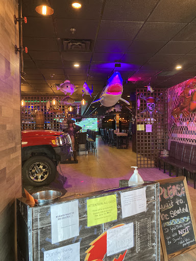 My daughter and I dropped a friend nearby this restaurant. We are not from this area. We wanted seafood and google showed they had âThe Crafty Crabâ restaurant within a few miles of where we were. Weâve eaten at The Crafty Crab multiple times but at different locations. Upon entering this establishment, there were posted signs taped to the doors that read, âNo weapons allowed.â We enter and see two men with medical mask on seated behind a desk and one states âyâall dining in,â we reply, yes please. Immediately an Asian slender man wearing a baseball cap & jeans comes to the front and leads us to a not so well lit area in the restaurant where others are seated eating. We sit at our table and wait for our waitress. The decor in the restaurant is nice, but again it was too dark for my liking, I want to see my food. The music playing in the restaurant was okay as they played Rod Wave songs the entire time we were there, but it was so loud we could barely hear our waitress. Also, our waitress seemed high off somethingâŠshe didnât seem focused and it appeared like she was afraid or very timid. As our waitress is taking our order the same Asian man comes behind her and begins to fuss at her for taking long to take our order. She takes our order and before she can send it to the cook or kitchen, he angrily instructs her to take the next table order. Other waitresses came out half dressed like they were in a club and he began yelling at them. They also, appeared to be high off something and timid as well. At this point, the slender Asian dude behavior was given Angry Bird vibes, like he really needed to chill. We saw (2) men of color working the bar area and he wasnât screaming at them and they were getting many ppl beverages wrong. As we waited for our food, I noticed more signs posted of âNo weapons allowedâ on the walls where we were seated. The seafood boils and drinks came out quickly but the sauce was too salty and we both ordered the boils in Medium flavor with the Boom Sauce. Anyway, we decided to take our food to go after being there for 20 minutes. The vibe was ghetto and seemed suspicious. After we paid for our food, we attempted to use the restroom; we couldnât do it. The restroom was darker than the restaurant, was filthy, funky smelling, the floor was wet and there was a plunger in the middle of the floor! We threw our barely eaten food in their trash can and left.