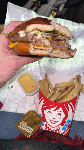 Read moreWe are from Virginia and stopped here at this North Carolina location because my husband and I were both starving And after we left, my husband and I wouldâve rather continued to starve!! Went through the drive-through got no straws for our drinks and no receipt for our purchase and no napkins. About the sauce that comes on the baconator pretzel burger and the boy that took the order proceeded to tell me that it comes with no sauce, even though the picture shows it with sauce. đ¤Śđ˝ââď¸ Once me and my husband parked I unwrapped my sandwich to see a sandwich with sauce on it after I had asked for two mayonnaise packets because they had told me that they donât put a sauce on the sandwich and it only had two little itty-bitty pieces of bacon bits on it on a sandwich thatâs supposed to have two patties of meat and two layers of bacon. I walked the sand inside and there was two managers and the owner of the store!! The owner of the store asked me what was wrong and I told him and he flat out told me that they had made me the wrong sandwich and that the sandwich I was given had some kind of a barbecue sauce on it!! so the manager stood there while the other little boy made my sandwich and I get back out to the car and it was still made wrong. The first sandwich had two patties of meat on it and two little pieces of bacon. And the second sandwich had one patty of meat and four little pieces of bacon and I was charged $11 for a sandwich that was not worth...