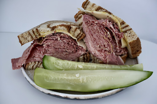 I got a corned beef sandwich on marbled rye with Swiss cheese (I basically constructed a Reuben without realizing it) and a cinnamon pecan pastry. My total came out to be almost $20, which feels like a bit much for a sandwich, but I think it is on par with most other sandwich/deli shops nowadays, and the portion size could be enough for two meals depending on how much you normally eat. The corned beef was thinly sliced and very soft. It was also too salty for my liking, but I think corned beef is typically supposed to be saltier (again, I don't normally eat deli meat). As stuffed as the sandwich was, the sandwich did not fall apart when I ate it, which was great, and it tasted even better toasted.