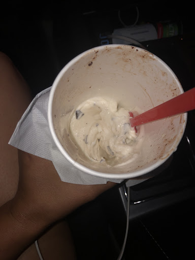 Kid, I get you wanted to go home but what you did was disgustingly unsanitary! The cup hit the counter(which had cleaning chemicals on it from it being wiped down) it then hit the trash can and fell behind it! Seriously...you wiped what YOU thought was dirty off with a napkin and then put new ice cream on top. OUR SON COULD HAVE GOTTEN SICK! All you had to do was make a fresh blizzard...a fresh mini blizzard.....Iāll be calling the health department buddy!