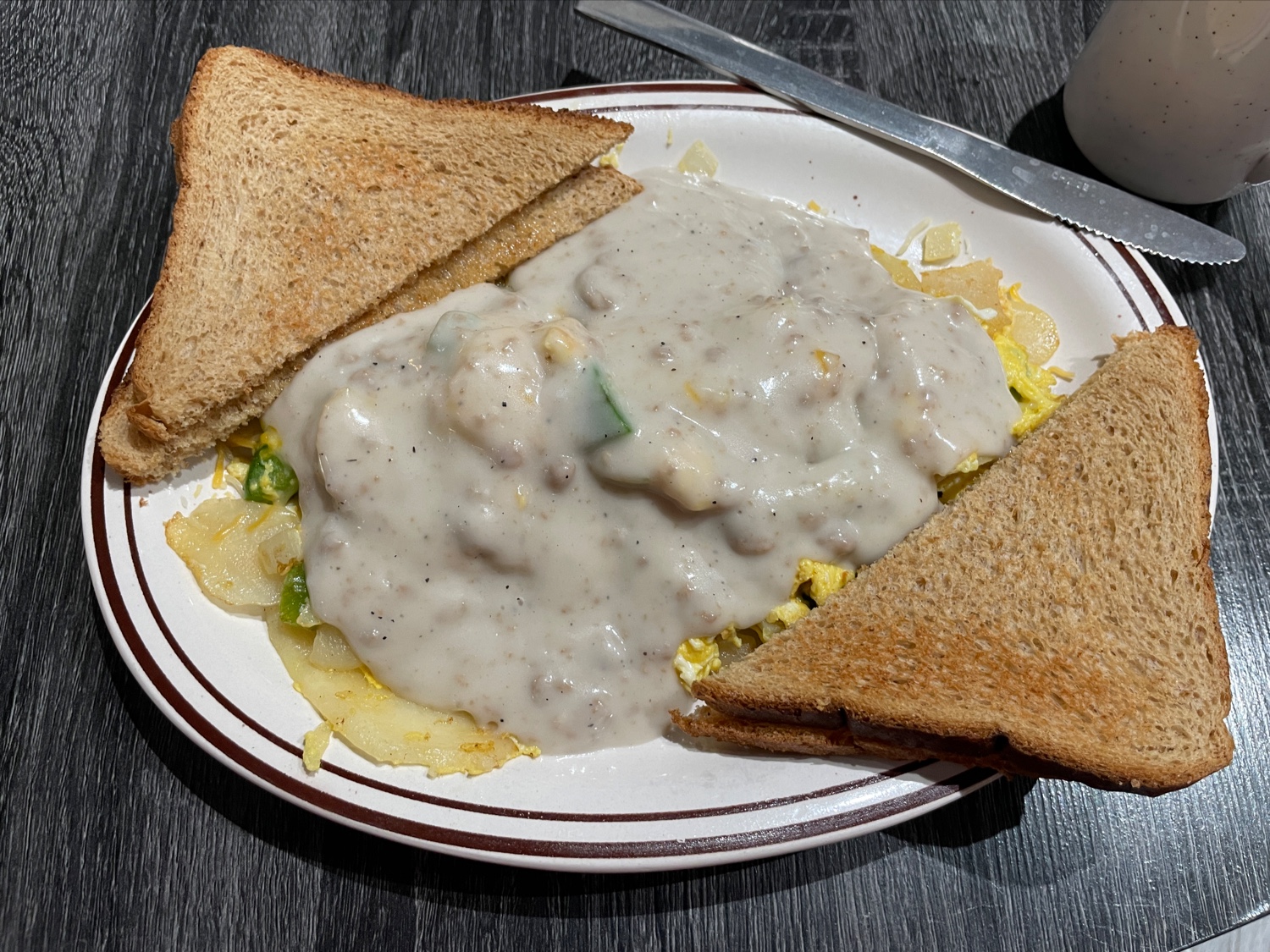 I was here on Sunday morning. There was one other table there. Itās fairly new so that didnāt worry me. I was going to sit at the counter as a single but itās clearly just where the staff hangs out. I got a table right next to it. Server came right over, got my drinks, took my order when she brought them. I got the country omelette which came pretty quickly. While it was ok it really needed some salt or something. The sausage gravy was really bland which was unexpected. The omelette underneath was ok but again no seasoning. At this point I was the only customer in there. My server was right behind me at counter. I had to ask her for more coffee since after she dropped the food she was just chatting with the other servers. There are other better breakfast places in the area so itās unlikely Iāll go back. It was clean in there so thatās a plus. Iām not sure Prince pumping out at 7:30 am is the way to go for the diner crowd but it did keep...