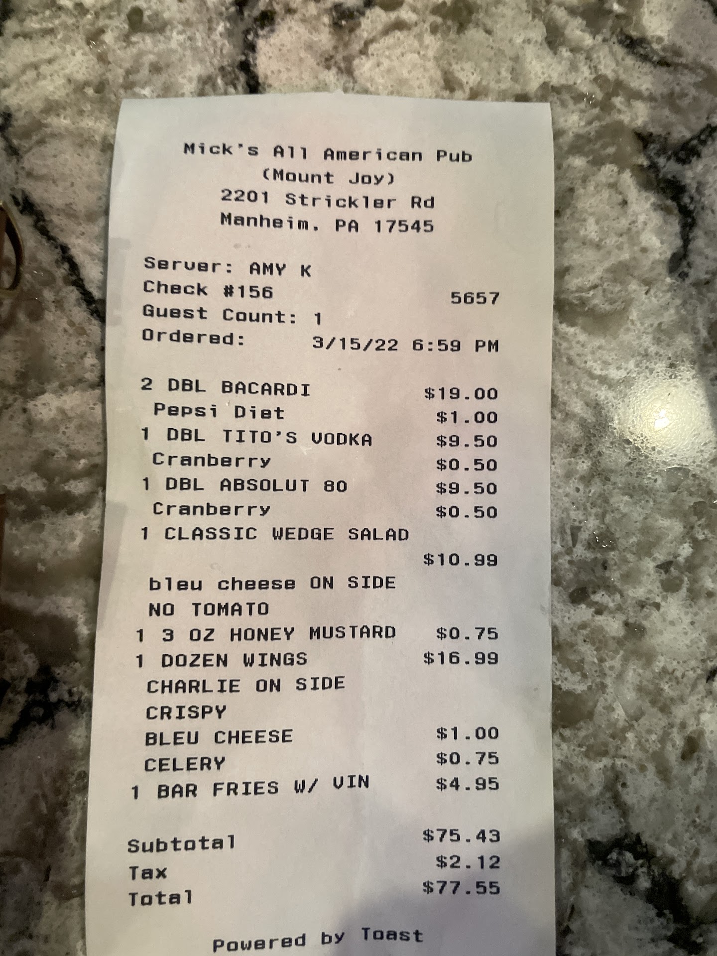 Stopped at Micks recently because of its location, seemed convenient and a decent place to get a drink and a meal.