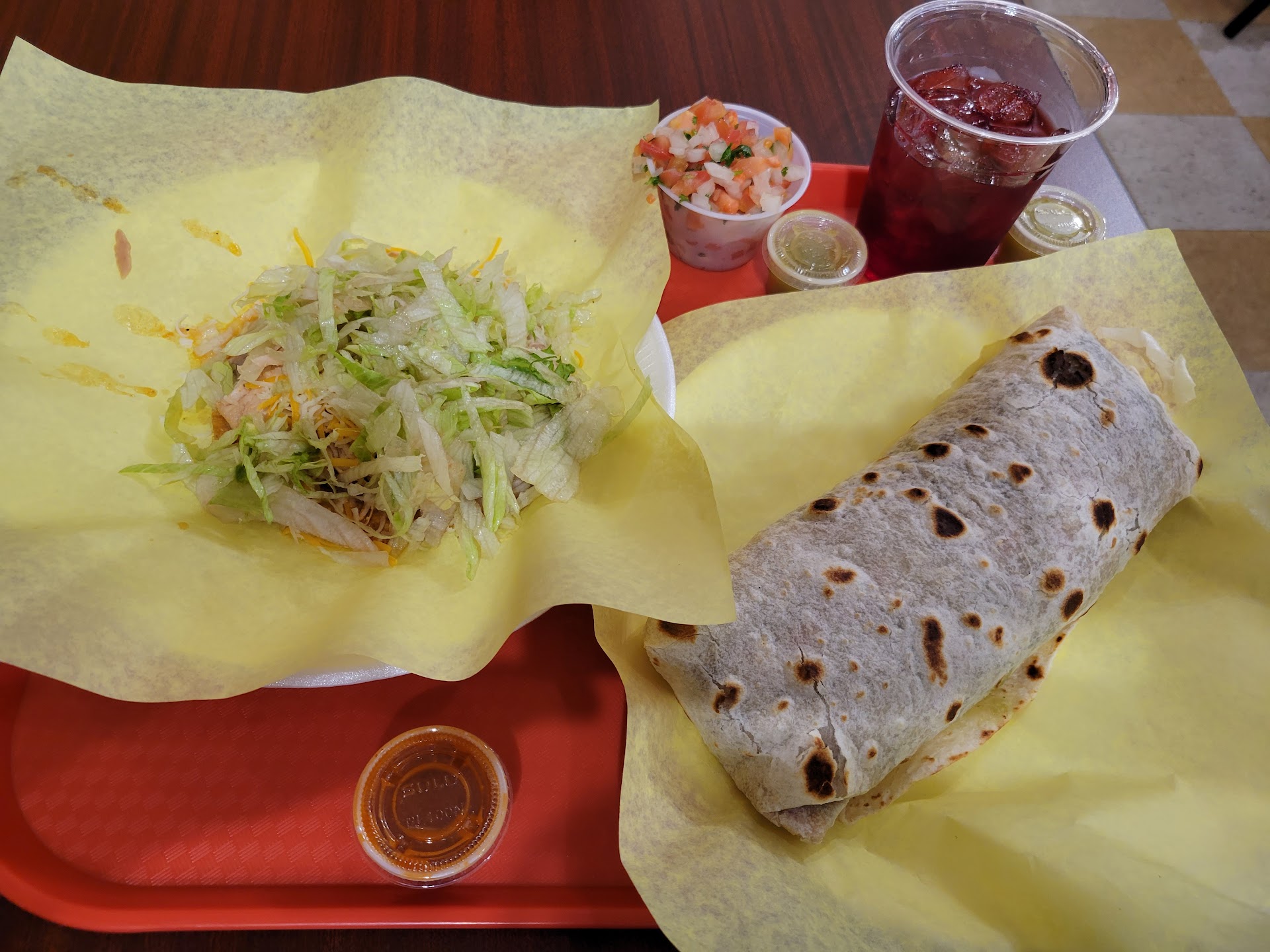Read moreExtremely frustrating experience. We ordered online ahead of time (and paid in advance). We went inside to pick up our order but there was a huge line and no where to pick up online orders. So we decided to try the drive through and told them we had a pick-up order - we were told it was fine to pick up at the window and to pull forward. We found out after we waited in the drive thru for 15 minutes (now 30 minutes after order placed) the woman told us they just started cooking our order (clearly they weren't monitoring online orders). No apology from the staff, no accommodation for the mistake. We were told to go inside and wait for the order. We waited inside for another 15 minutes (now 45 minutes since we ordered) in line to talk with the cashier and she told us our food still wasn’t ready yet and instructed us to wait until she called our name. We waited another 15 minutes at a table right next to cashier (we had now waited for 1 hour in total since we placed the order online) and returned to the line to check on our order and the cashier then gave us two bags of food that had been sitting there for a while but she didn’t call our name. The food was good but our orders were not correct (our enchiladas and burrito had fajita veggies inside instead of beef). Very poorly run establishment with slow service and way too large of a menu to be successful over long term. Unfortunate since it was good food but we...