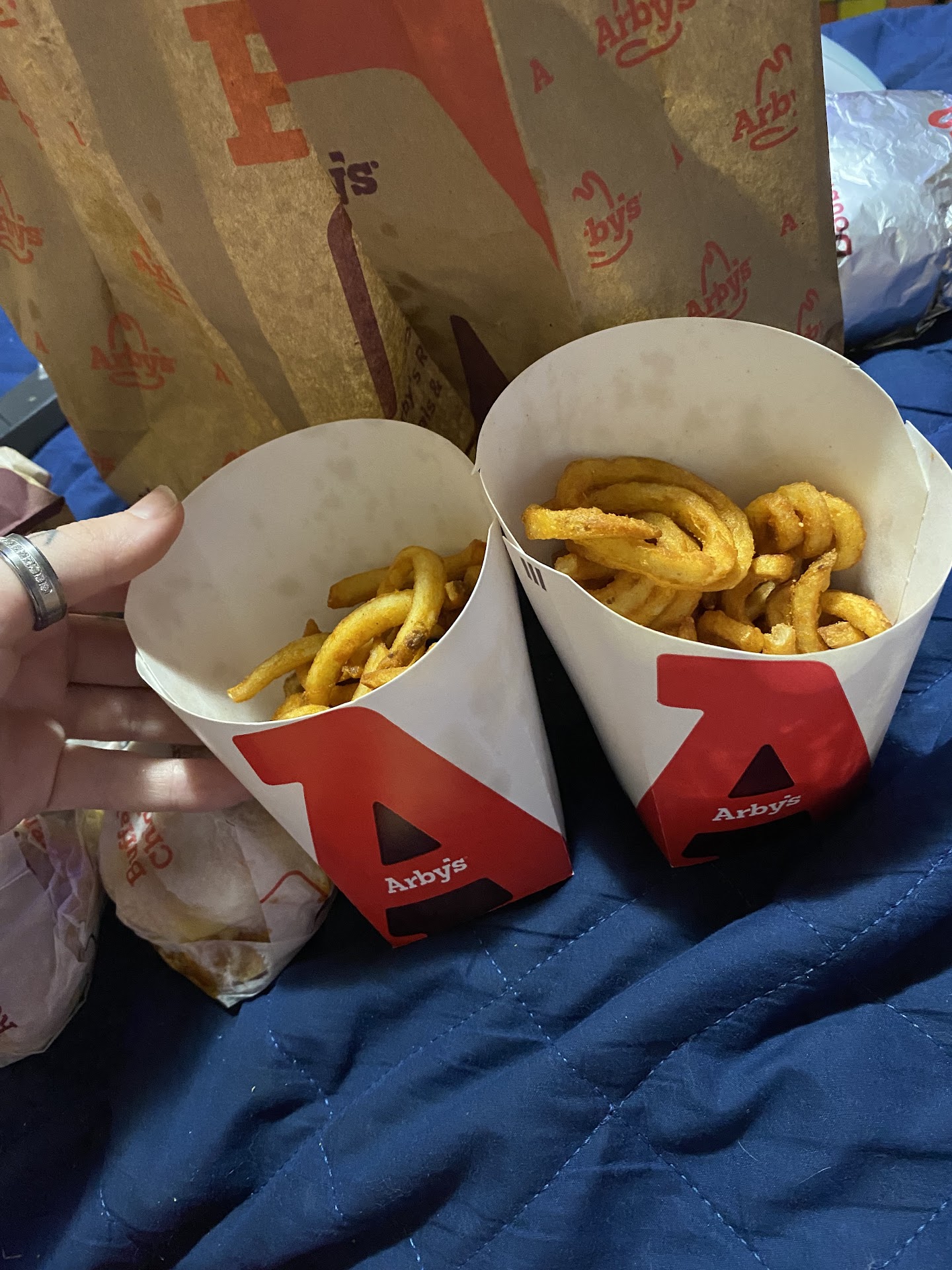 My father and I went for a quick lunch and I guess our mistake was going through the drive-thru. We waited and waited behind 5 cars while 4 cars were behind us. About 20 minutes later we were second in line to the window to pay and get our food, we seen our bag of food get placed in the window while Arbys messed up the customers order in front of us. When we finally arrived to the window, I gave the guy the money and we got our food and I simply asked for arbys sauce, horsey sauce, and honey mustard but instead I got a handful of ketchup, 2 horsey sauce and 1 honey mustard. Plus the man told me to pull forward to get my $4 in change and we waited another 5 minutes, during that five minutes we ate some of our food but not all of it cause of course it was cold. It definitely did not end up to be a quick lunch and I really dont plan on going back to Arby's on this side of town. I did Arby's survey that day and clicked the box and put my phone number in for the manager to contact me and I have not got any reply back since then. I would not recommend going to this Arby's to anyone I know.