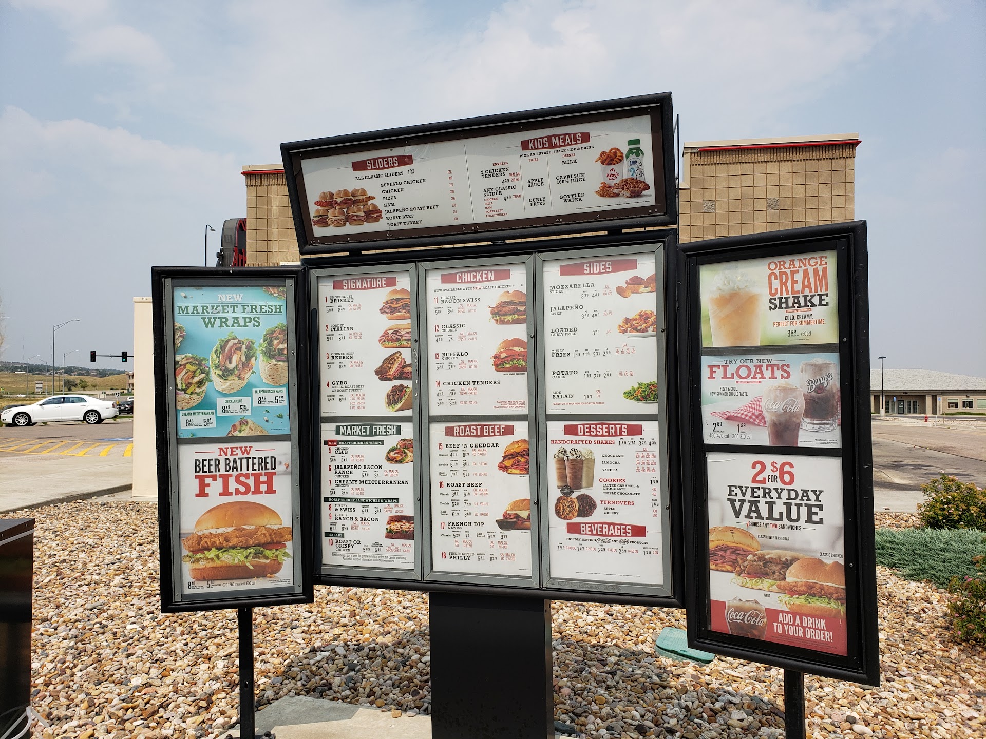 Read moreBig sign in the window that says 2/$6.00 fish sandwich. Ordered 2 and paid $3.59 each. When I mentioned this at the drive-thru window the girl simply said, âOh is that sign still up? Sorry about thatâ. I called and spoke with the manager who stated there is NO sign stating fish sandwiches are 2/$6.00...where was the sign...on the window or in the restaurant? Where did you see it?â Who the hell cares where it is...look at your own building and remove the sign if itâs not valid anymore? Reply... âWe never offered our fish sandwiches for 2/$6.00â. I read the sign and it was indeed there. The sandwich, by the way, was terrible. It was dried out and soggy on the inside. Donât waste your money on this place! James Earl Jones should be ashamed to promote Arbyâs. See below: Arbyâs 2 for $6 Value Menu