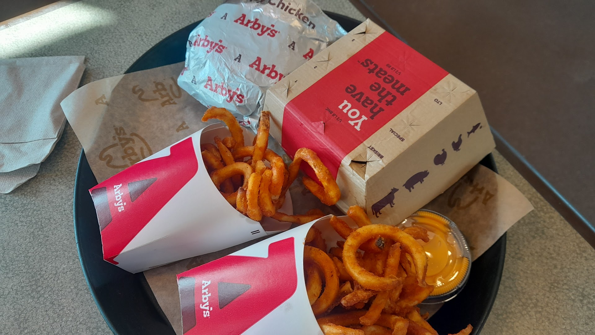 Read moreWORST ARBY'S SERVICE I HAVE EVER HAD. They couldnt have gotten my order any more wrong if they tried. I was on my lunch break, drive thru was taking forever. so i pulled out went inside. which was filthy, the sode machine was full of liquid with no tray so you just had to hold your cup as you filled, otherwise it'd be soaked. after waiting 20 minutes over my lunch break my name was finally called, i grabbed my order and ran out the door needing to get back to work asap as i was already late. open the bag to find no marina with my 6 pc mozz stick (which i had asked for but should be included regardless even though he never asked) that was upsetting, im not eating dry mozz sticks. so i open #2 medium roast beef, or what was supposed to be.. only to find a ham and cheese, disappointed but hungry i tried it. disgusting. this thing was soaking in nasty nacho cheese like substance, there was more cheese than meat. $18 down the...