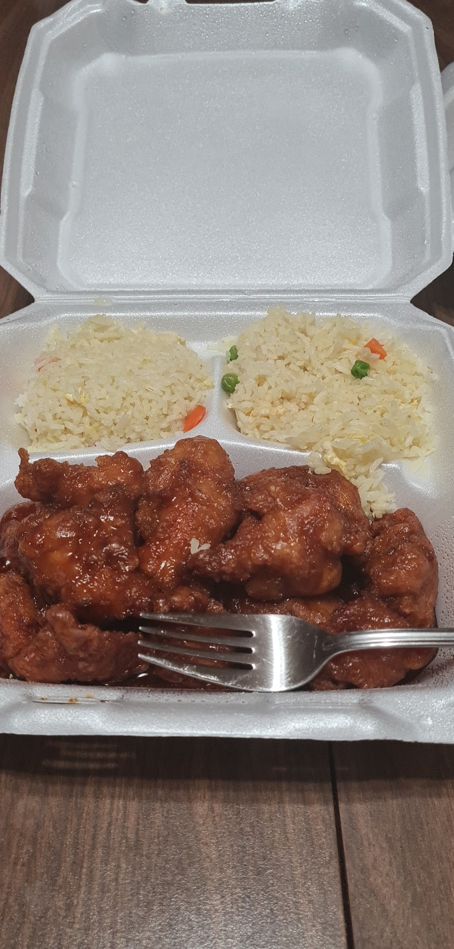 Read moreAt first glance everything looks fine. I've purchased food here many times as I am a local. I've not ordered here in a year, but last night I picked up a Togo order here's what I got. Chicken strips and fries for my son. Lo mein- White rice with vegetables and chicken wings. Orange chicken combo with fried rice and crab ragoon. My total was 36.74 with a 1.00 tip My orange chicken was weird... at first Glace everything looks fine. I took a bite and felt like it might be undercooked? I cut my chicken in half and it was not undercooked but it was really soft, I was expecting at least a crush or something. My fried rice was good like usual. The Crab Ragoon was also pretty good. Found a hair but I'm not sure where it came from. Maybe the chef has facial hair? It looks thick and black. The taste of the chicken was quite off so I didn't finish eating. I looked at other reviews and didn't feel like dealing with the quote "Rude staff" My son wouldn't eat his chicken strips really, but loved the fries. I'm not holding that one against Great Wall, my kid is a butthead. My boyfriend complained that he only got two pieces of fried chicken with his Lo mein but the rest was good, he...