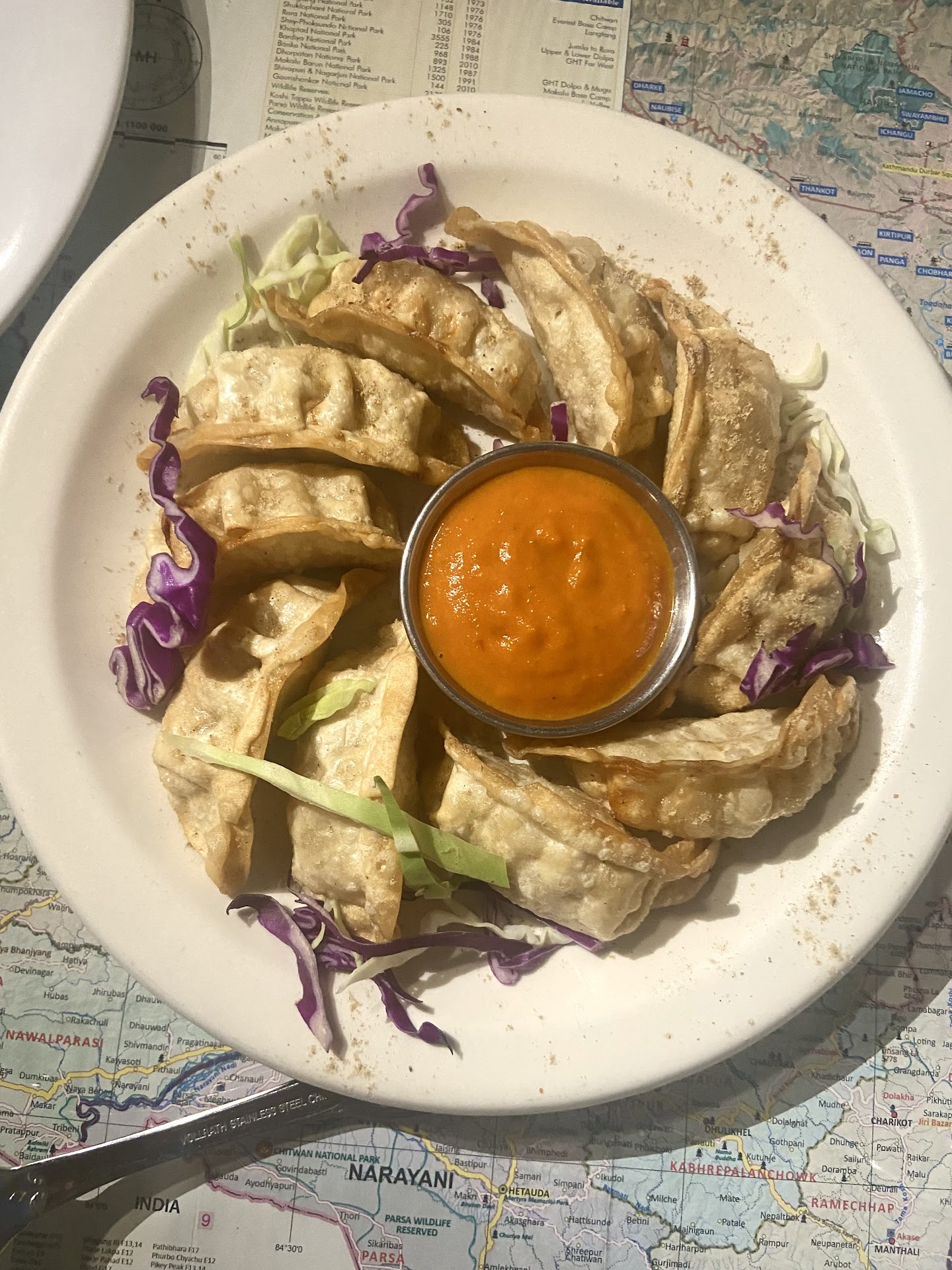 Kathmandu Momo Dumpling w/ Nepalese Chutney (4/5): I have had a lot of Chinese dumplings & Japanese gyozas & Korean mandus in my life, but it was my first having a Nepalese momo. I feel like this momo dish in particular was not too different from your typical Chinese dumpling if we're just talking about the dumpling itself. However, the momos also came with this sour/spicy powder sprinkled on top with a wonderful cuthney dipping sauce, which is the differentiating point from your typical Chinese dumpling. I've never had momos before this, so I'm unsure if this is how it's typically served, and don't have a reference point. It was perfectly fried and paired deliciously with the chutney. I'm just taking away 1 point since the actual dumpling was not very stand-out in flavor. It's still very yummy though.