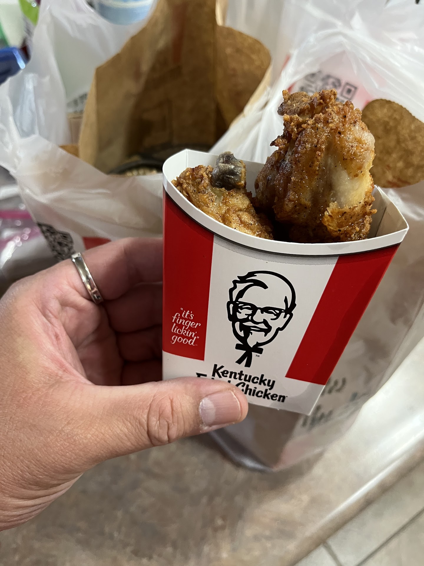 Read more3rd time was not the charm. Messed up the order all 3 times. 1st order: 2pc meal, Mac & cheese bowl & side of slaw. Put the slaw in the meal box (like it has ALWAYS come for YEARS, so assumed it went with that order), so wrong person got the slaw, assumed it was theirs & ate it disappointing the person who didn't get it. 2nd order: 2-2pc meals - guy repeated it back exactly, & special 12 pc nuggets for $6. Cost over $36??? Got home with 2-3pc meals & charged accordingly. No wonder it was so expensive. Not what was ordered. Just went for the 3rd time. 2-2pc meals (menu board says "2 piece chicken, mashed potatoes & gravy, biscuit.) Ordered 2 sides of slaw. Got home with the chicken, biscuit & slaw. NO mashed potatoes. No gravy. No butter or honey for the biscuit. Not a napkin to be found. Does ANYBODY work there that knows what they're doing?? Won't be going back for a 4th time. Not worth the aggravation. Especially since KFC is one of the most EXPENSIVE fast food places in town. Should expect way better for...