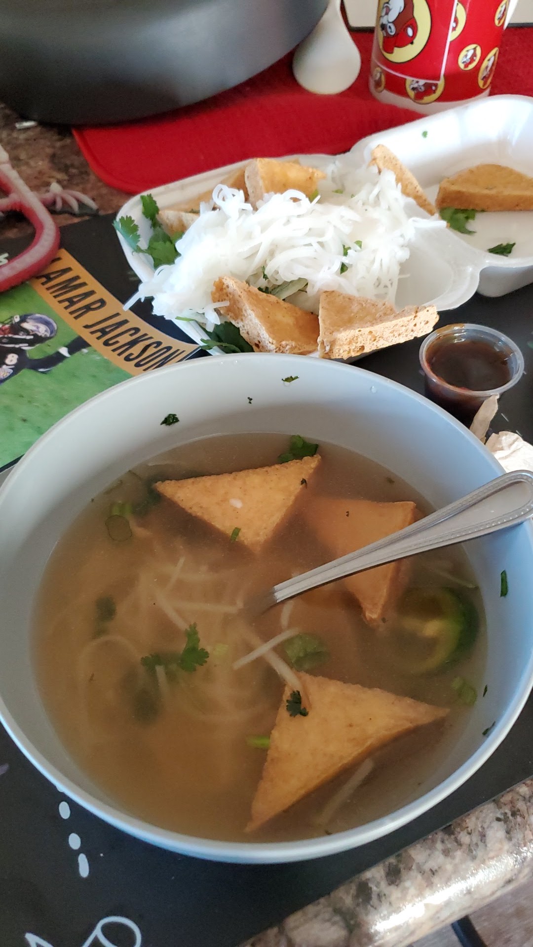 Read moreGod I love the Pho! That said, am updating reveiw with some disapointments. Called for take out, when staff answered, was asked to wait a moment. The phone was put down, and forgotten. Granted I could have hung up and called back, but they have an old landline and may have taken a few minutes to drop on their end. I left the line open. I drove all the way accross town. Occationally I heard conversation nearby and called out HELLO? At twenty five minutes I was in the store and trying to get the attention of someone to order, also showed them the time elapsed since I called. She found the phone and hung it up. Placed my order, was informed they were out of the soup we wanted. Called home and asked what other half wanted instead. Finished ordering, had the food in about 10 minutes, good, didnt feel an honest appology made, paid and left. Got home, looks like they scraped up a half order of the soup we wanted after all. Good, my quart container of broth for the pho had about an inch of fat on top, not good. Cillantro, no Thai Basil, not good. Pho still acceptable, but frustration kind of dulls the enjoyment. Will update review next trip if...