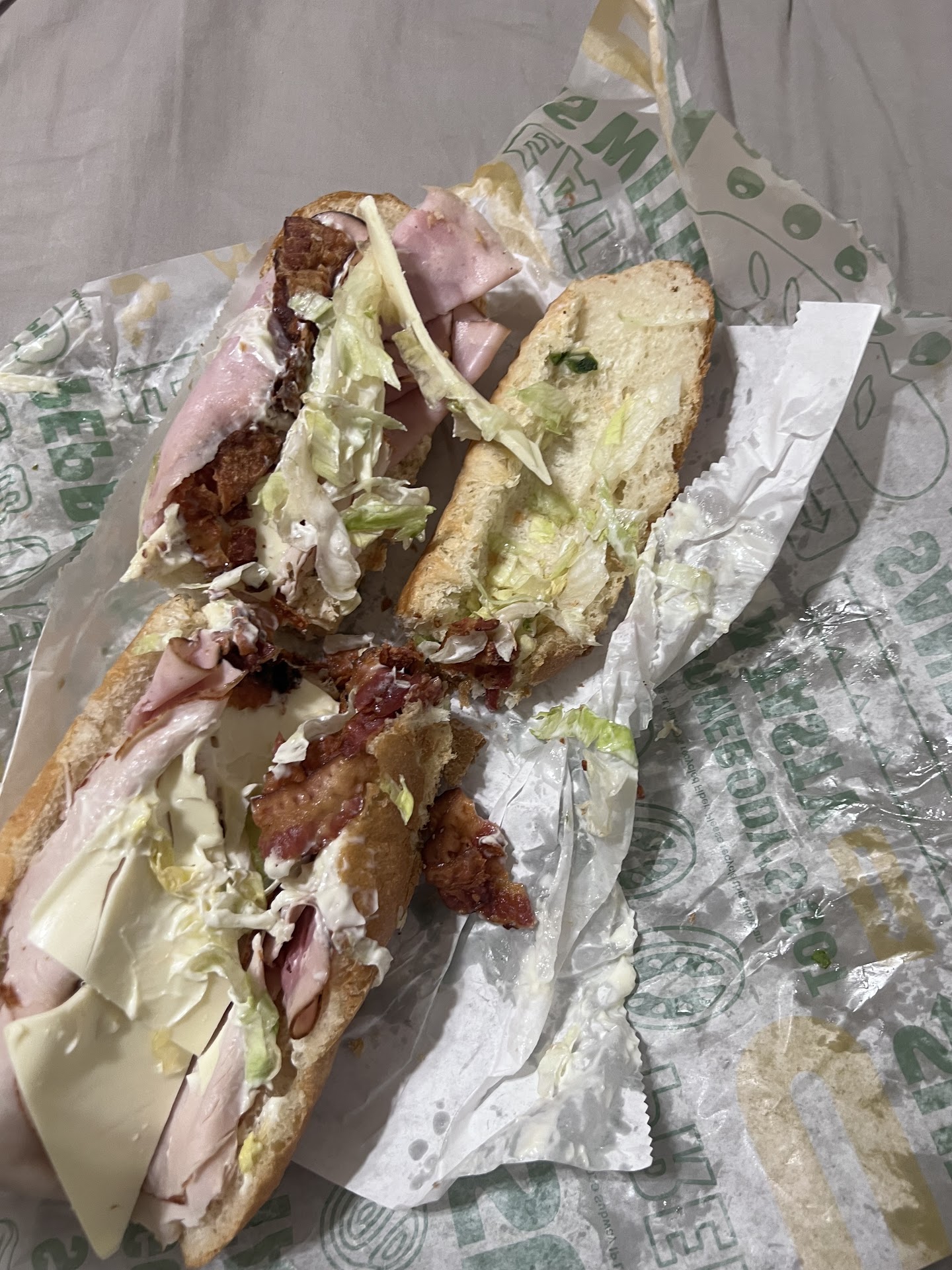 Read moreIn town visiting for a few days. Hungry for a good sandwich, hey; Subway right down the road. Went through the drive thru (yeah didn't read reviews first), placed order for foot long meatball with veggies, sweet onion sauce; toasted Also a dozen cookies, half c chip, other half white chocolate macadamia. Waited at window a few minutes, got my drink. Checked out the inside, nothing but shelves and boxes (great dust magnets). No idea where food was prepped or how it looked. Staff not so friendly (two young kids). Finally got my order after about 10 minutes. Wished I checked it first before leaving. Several areas of the bread were blackened by toasting. No sweet onion sauce. Barely enough veggies (spinach, tomato, onion, peppers) to fill a tablespoon. Wrong cheese out on. The meatballs were not fresh by any means. They were either left over from previous day, or overheated as they were so dark. Received 12 white chocolate macadamia cookies stuffed in a salad container (they were broken). When I took them out to put in Ziploc; 80% broken. Several tasted old (wow, what a surprise), along with fresh. Ate a few bites of the sub, then tossed. Saved fresh cookies. Interesting that Subway advertises "New and Fresh". Apparently the word has not gotten out to all franchises; or their employees. What a shame as they used to be just about the best...