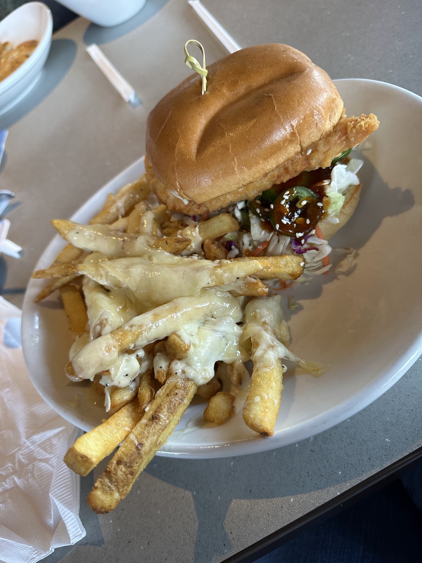 First let's start with the food, it definitely seemed made to order and fresh. Even the ingredients seemed prepped by hand and very well done. I enjoyed the cheesy cauliflower. I'm a huge fan of chicken fingers and these were massive and handbreaded. This was a pretty big deal for me cuz I hate freezer out of the bag chicken strips when I'm going to a restaurant. They definitely delivered and you can pick the sauces that you want but definitely a good value. I think it was like 8 bucks for four but they were huge.