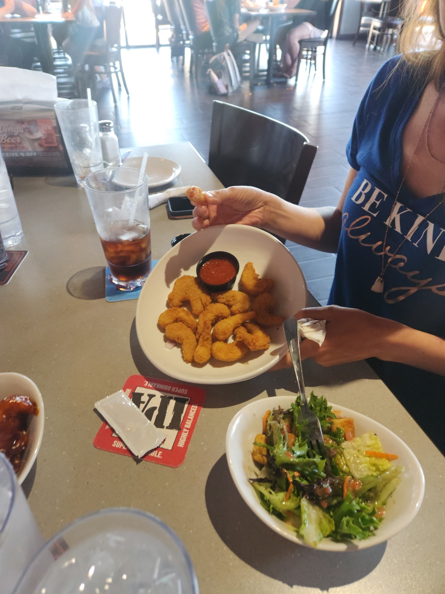 Overall it is a sports bar atmosphere. There are lots of TVs and sports paraphernalia. Very much reminds me of the restaurant that I'm sure they don't want named, Buffalo wild wings. In fact it was so similar they went from Buffalo wings & rings to just wings and rings to add some distinction.