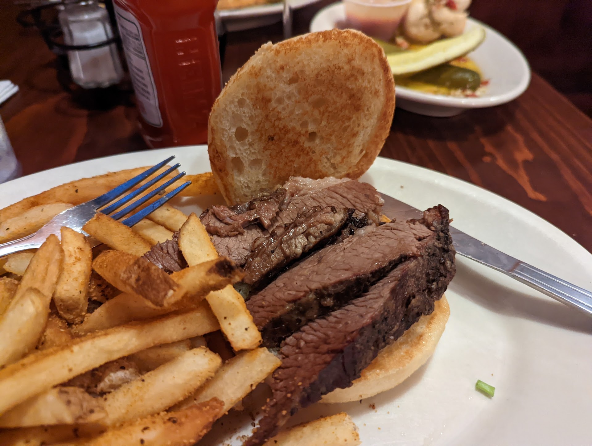 The initial Smoked Beef Brisket Sandwich that showed up had toppings on it, which was mildly disappointing but not the end of the world since all I had to do was scrape them off. I was just about done completing that process when a server came rushing over to give me the correct, naked sandwich. You obviously don't want to get the wrong order to begin with, but points for correcting it pretty quickly. The brisket was a little dry, though part of that undoubtedly was because it had no toppings. It was supposed to come with BBQ sauce on the side, but alas. Thankfully my friend was able to get our waiter's attention immediately to remedy that issue, and the remainder of the sandwich was good - not earthshattering, but something I wouldn't be upset about ordering again.