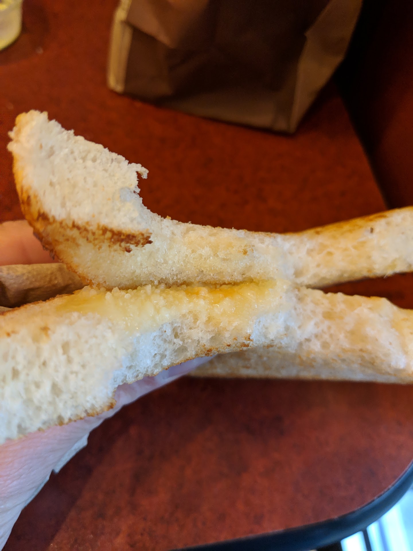 Read moreWe ordered broccoli and cheddar soup. Two bowls and two pieces of bread and two cups of coffee. One of the two bowls was severely watered down. This had to be deliberate. My wife complained and they gave a full refund. The place needs a good cleaning. Workers need to wear hair nets. Gross experience. We've been customers since the place opened. Here i the NJ law ...1. Except as provided in (c)2 below, food employees shall wear hair restraints such as hats, hair coverings or nets, beard restraints, and clothing that covers body hair, that are designed and worn to effectively keep their hair from contacting exposed food, clean equipment, utensils, linens; and unwrapped single-service and single-use articles. This subsection does not apply to food employees such as counter staff who only serve beverages and wrapped or packaged foods, hostesses, and wait staff if they present a minimal risk of contaminating exposed food; clean equipment, utensils, and linens; and unwrapped single-service and...